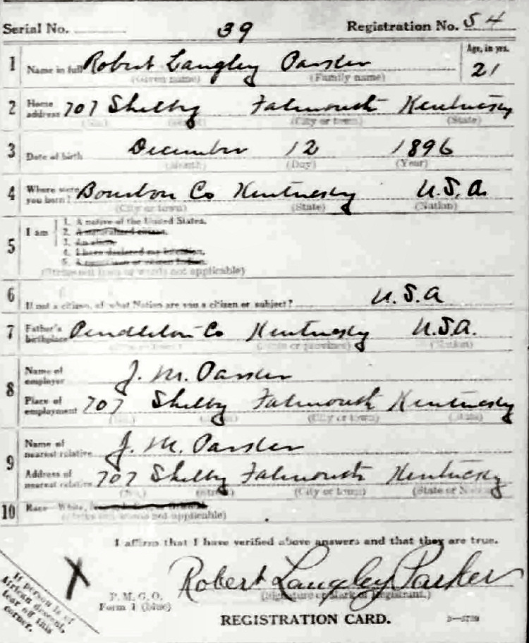 War I Draft Registration Card