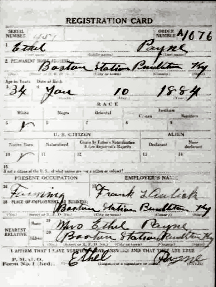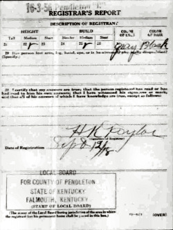 War I Draft Registration Card