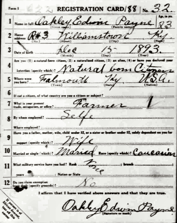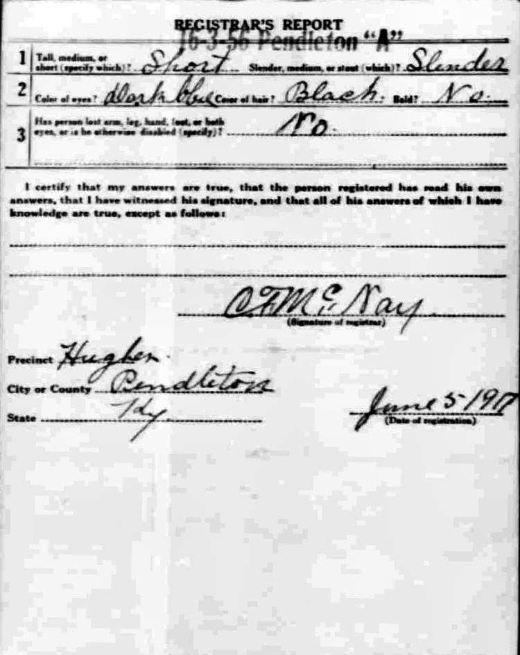 War I Draft Registration Card