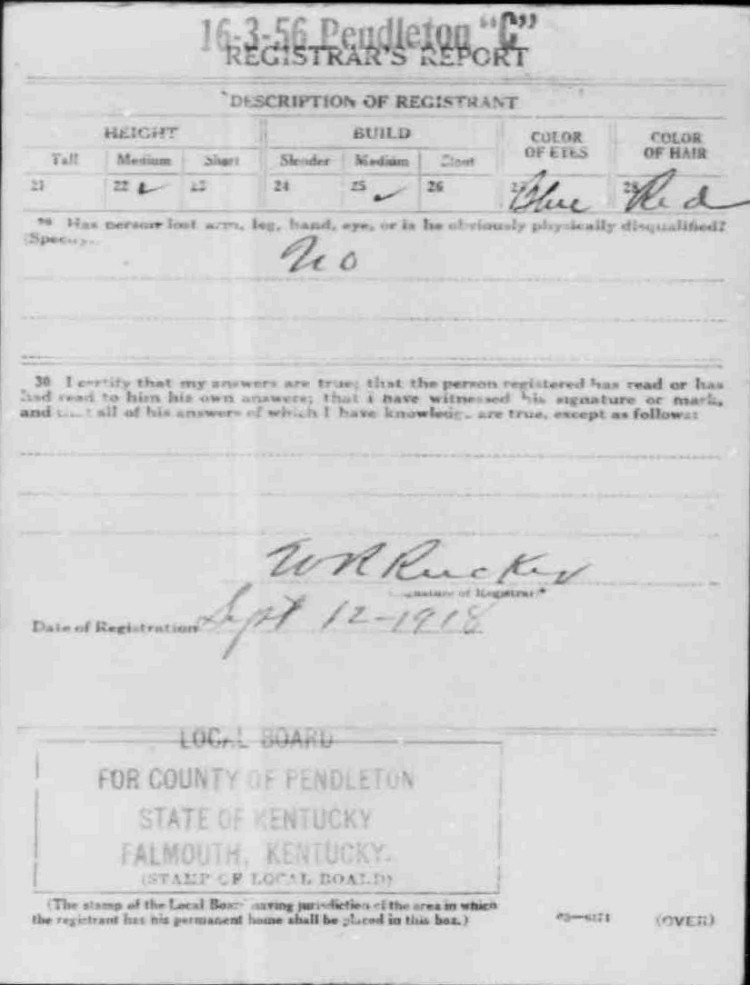 War I Draft Registration Card