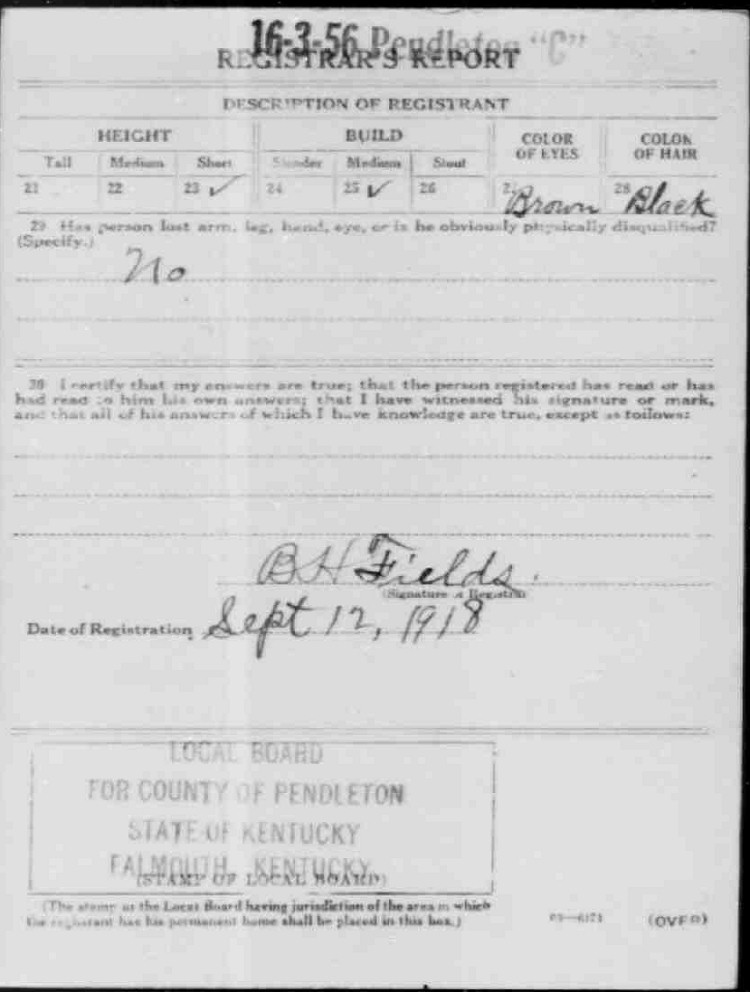 War I Draft Registration Card