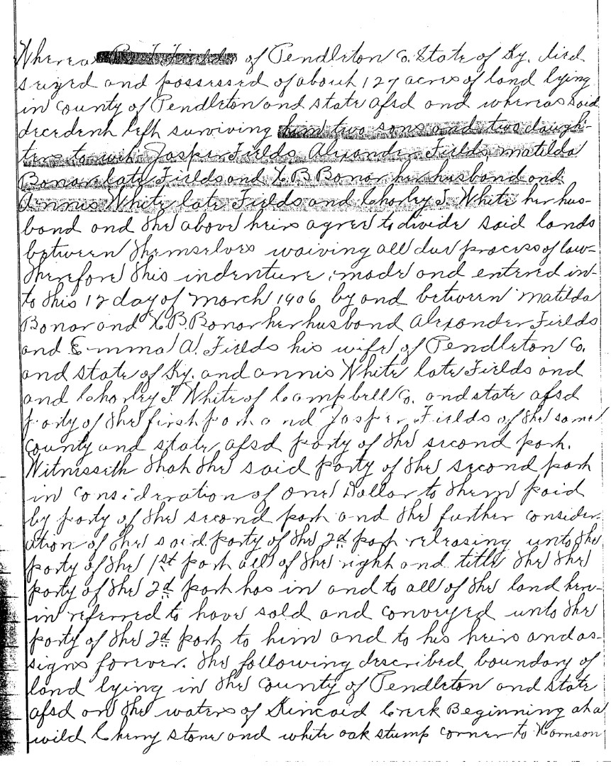 Whereas B. T. Fields of Pendleton Co. State of Ky. died seized and
