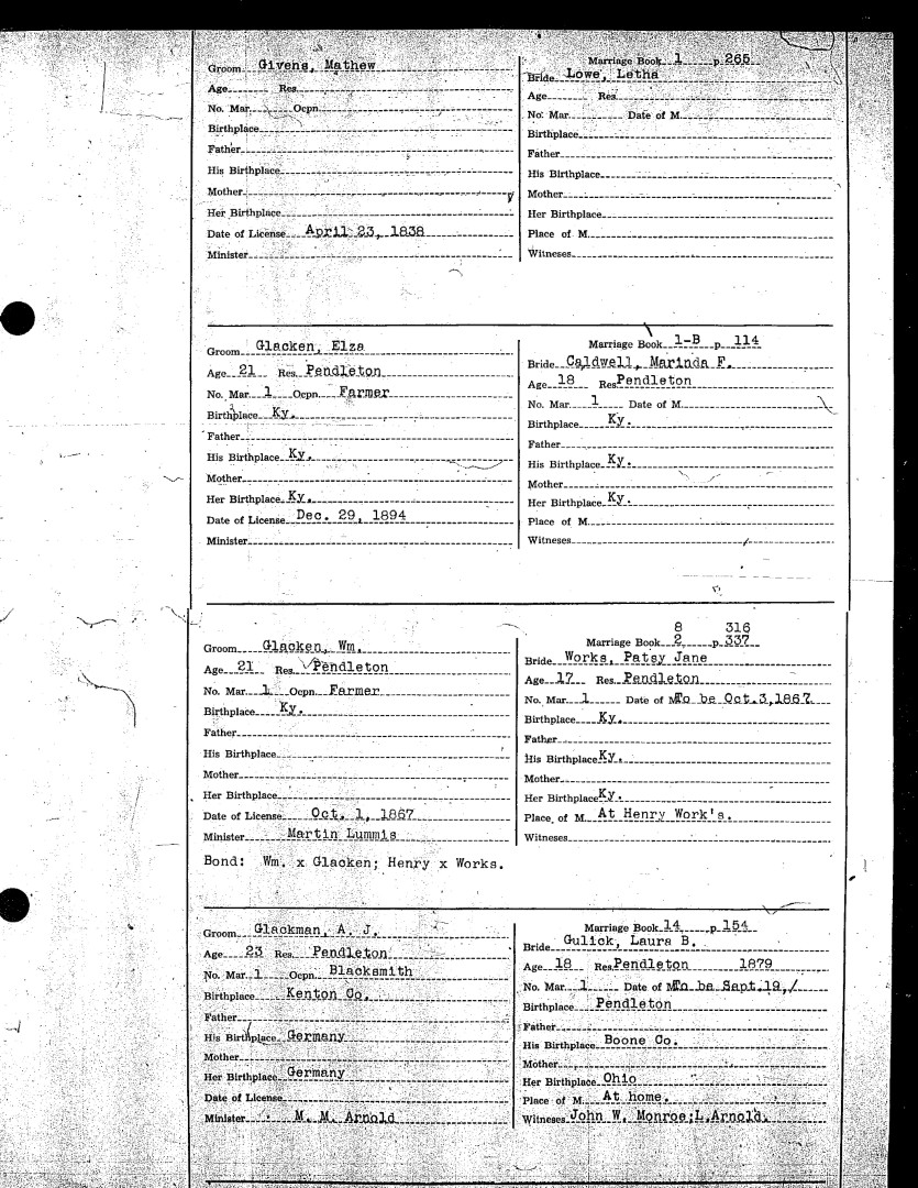 Pendleton County Marriages