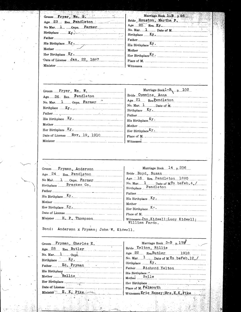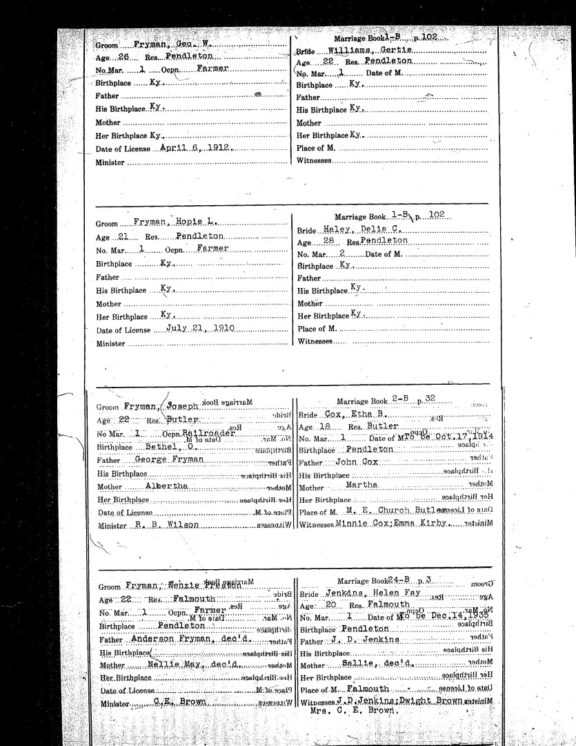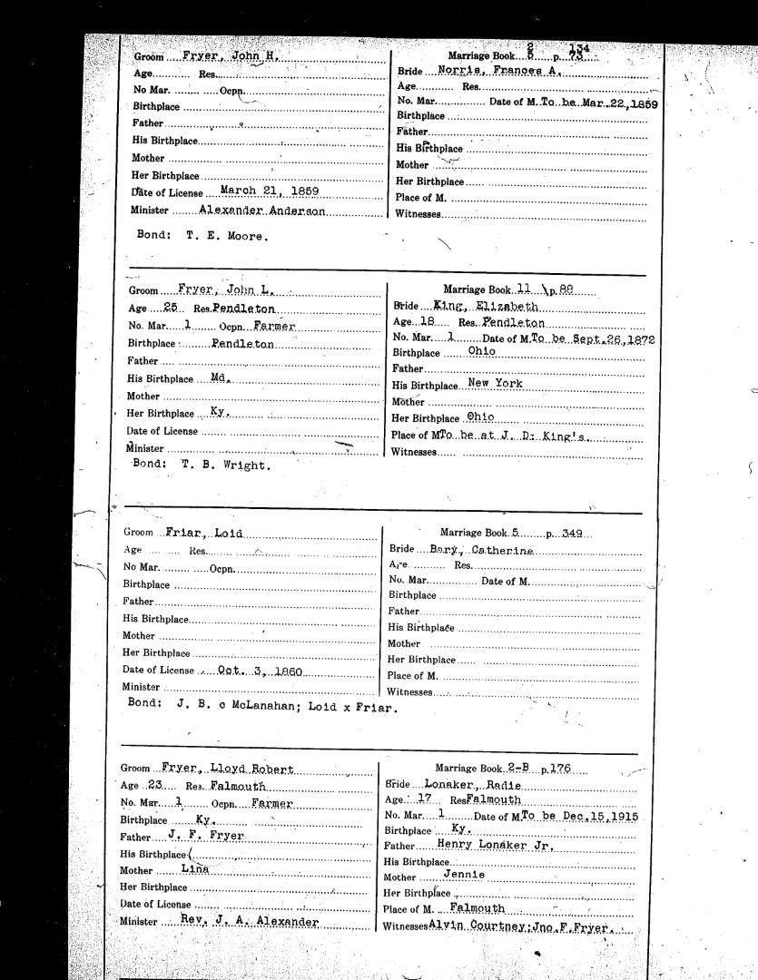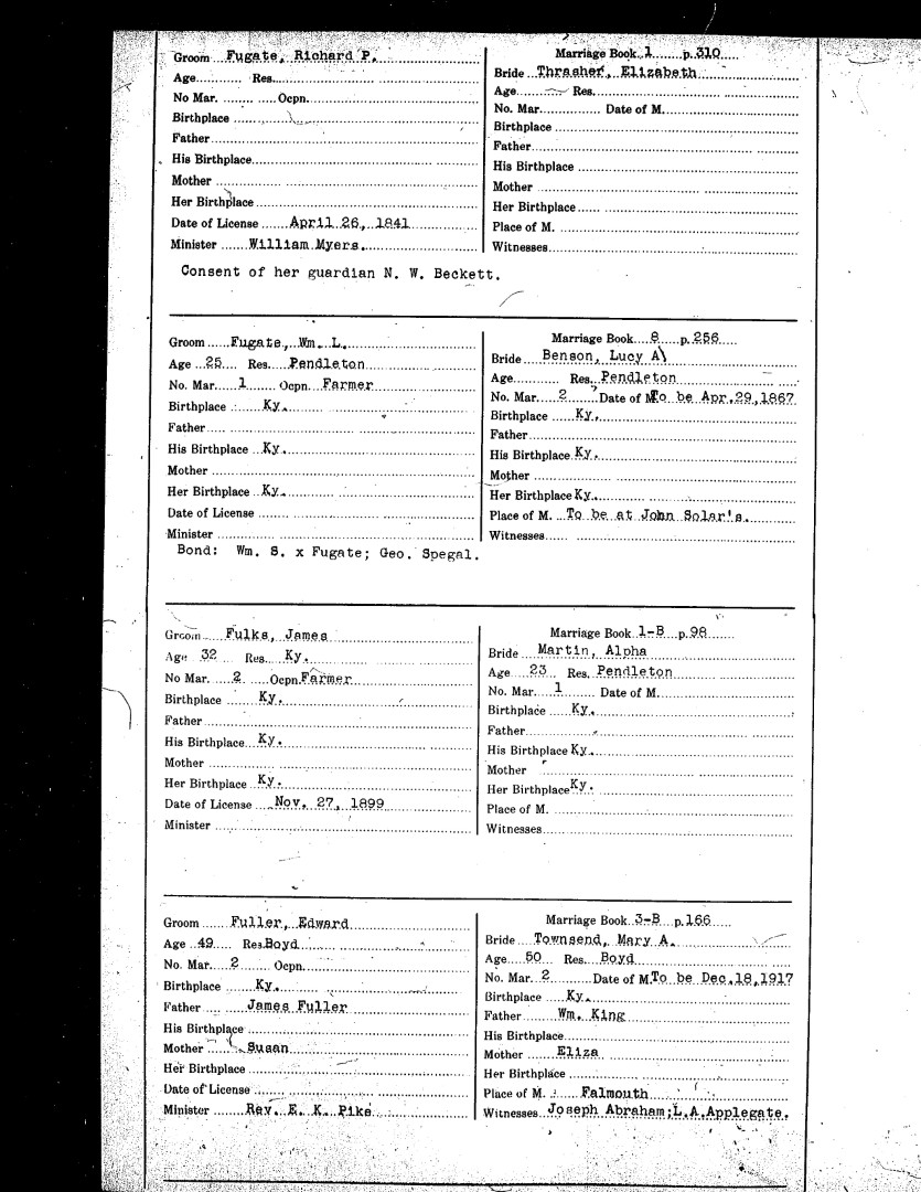 Pendleton County Marriages