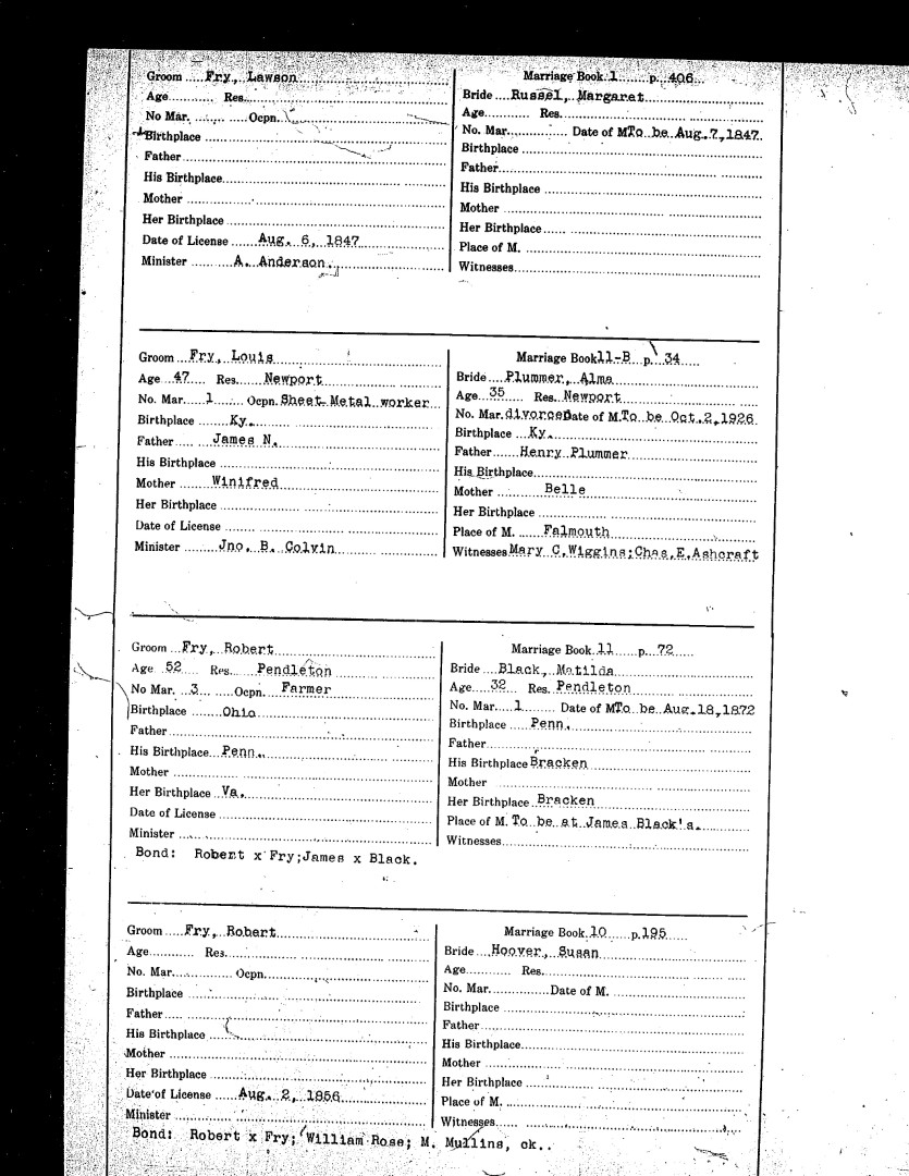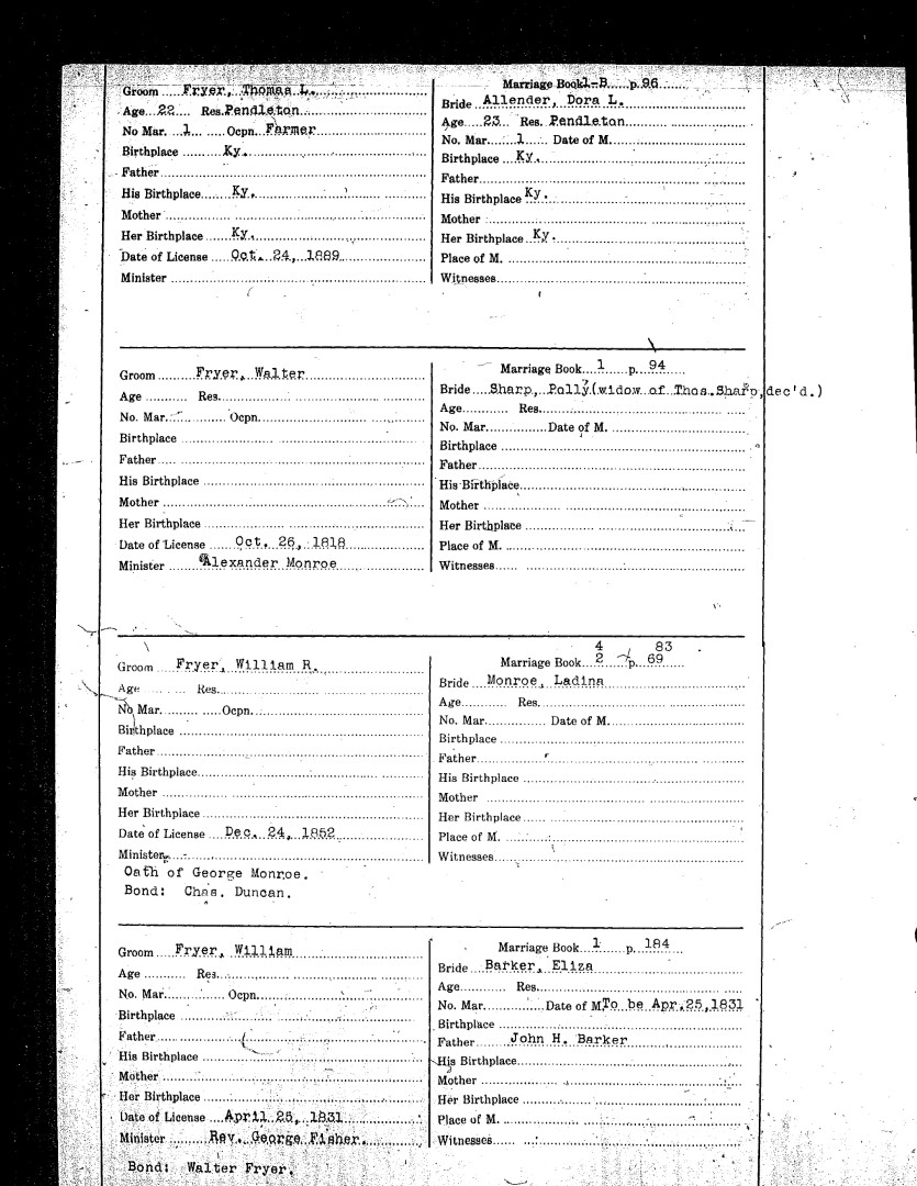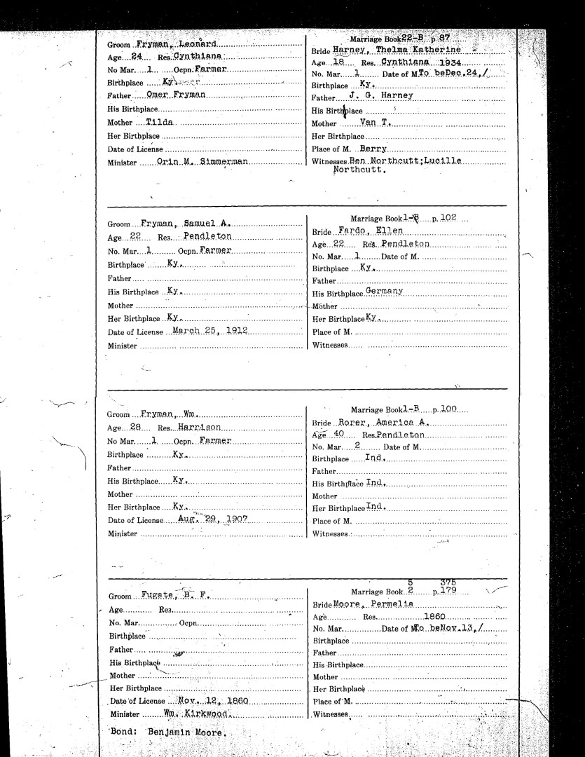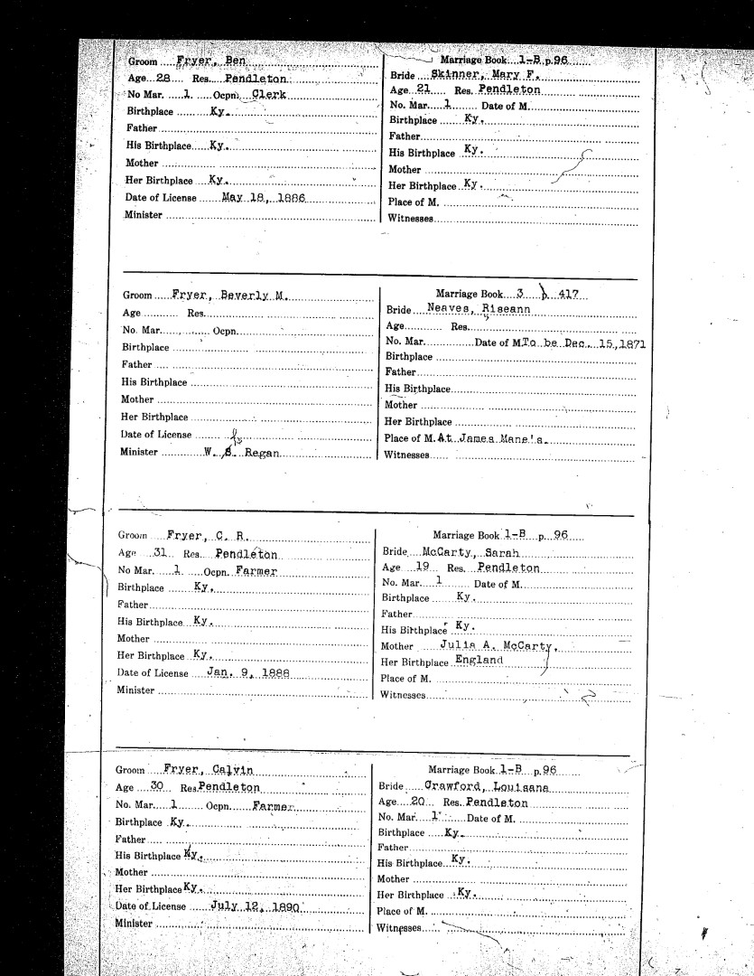 Pendleton County Marriages