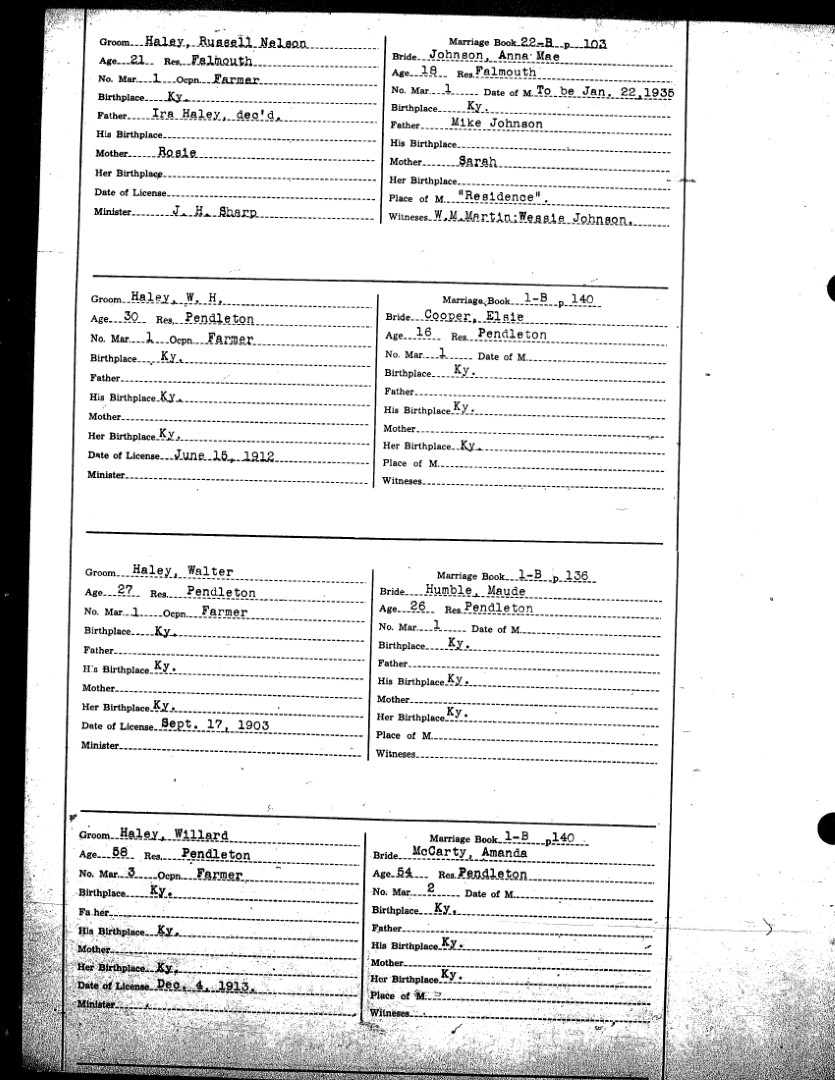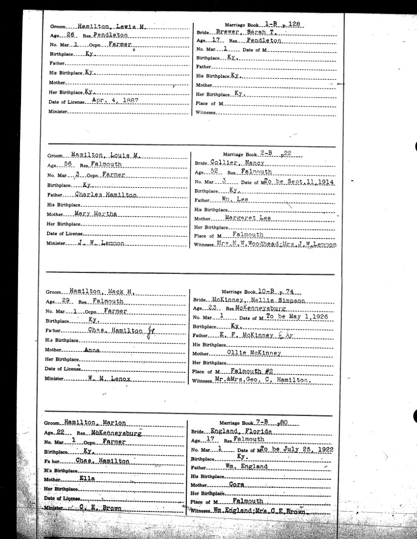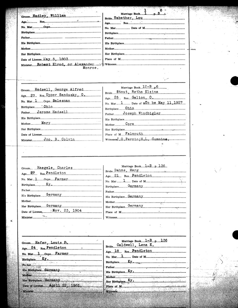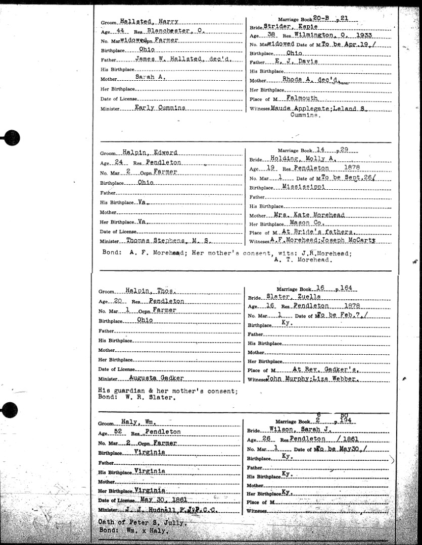Pendleton County Marriages