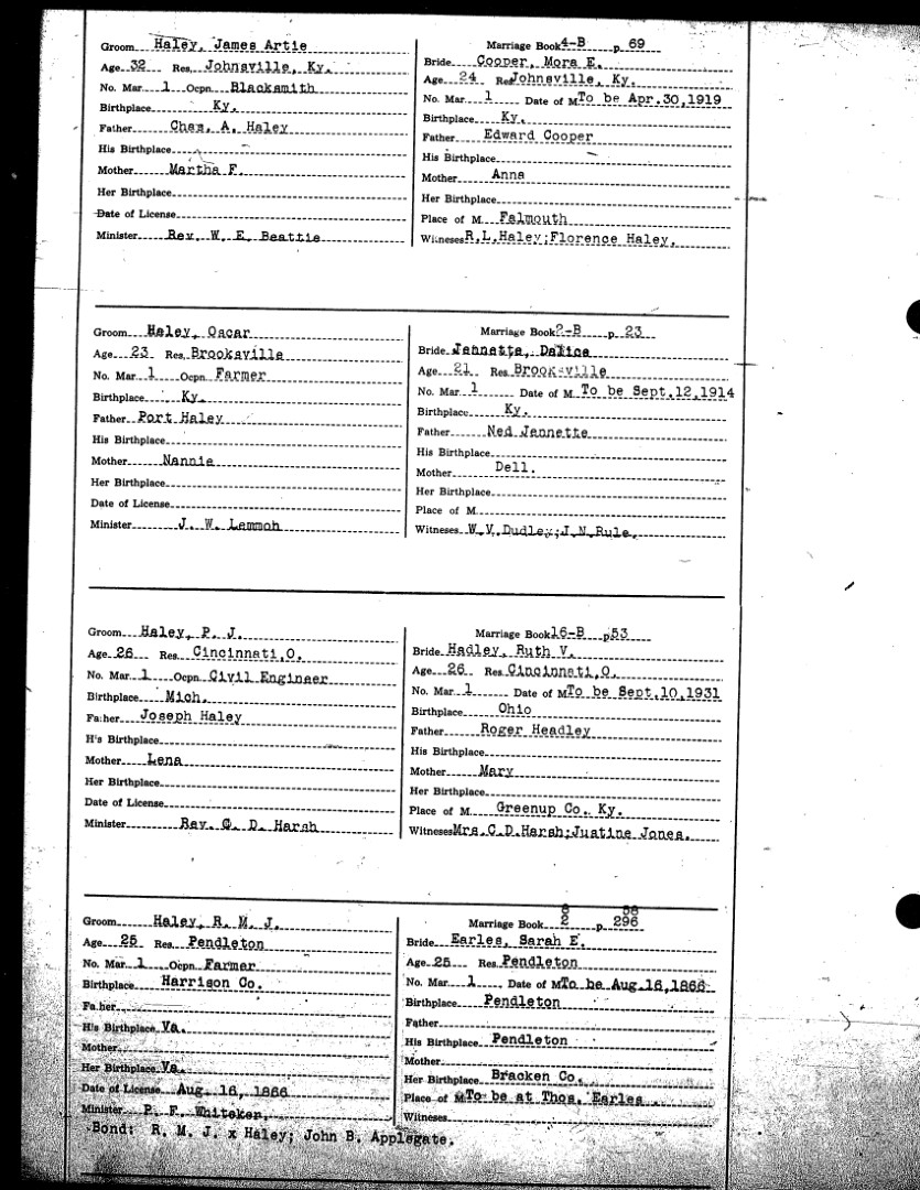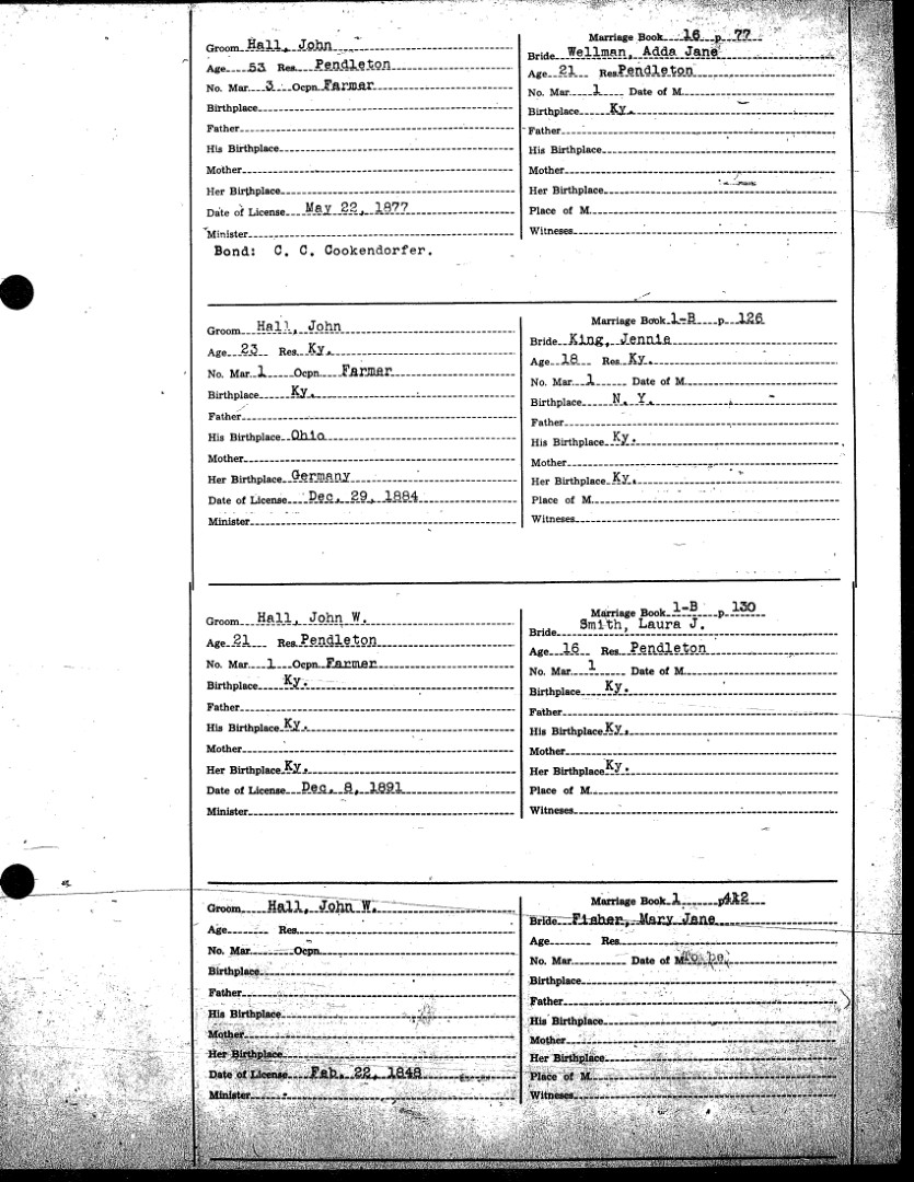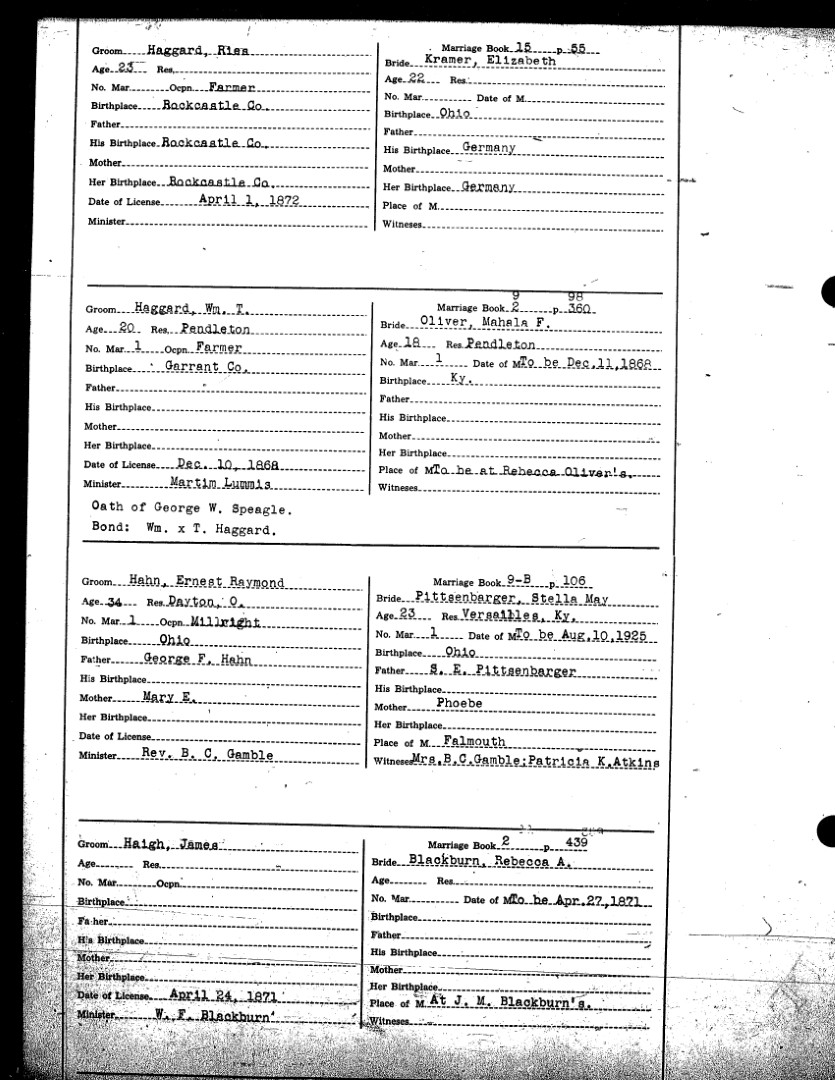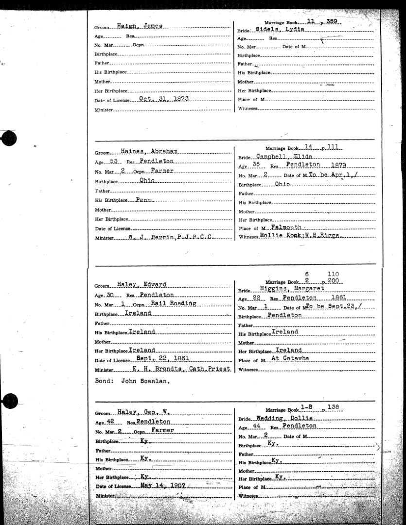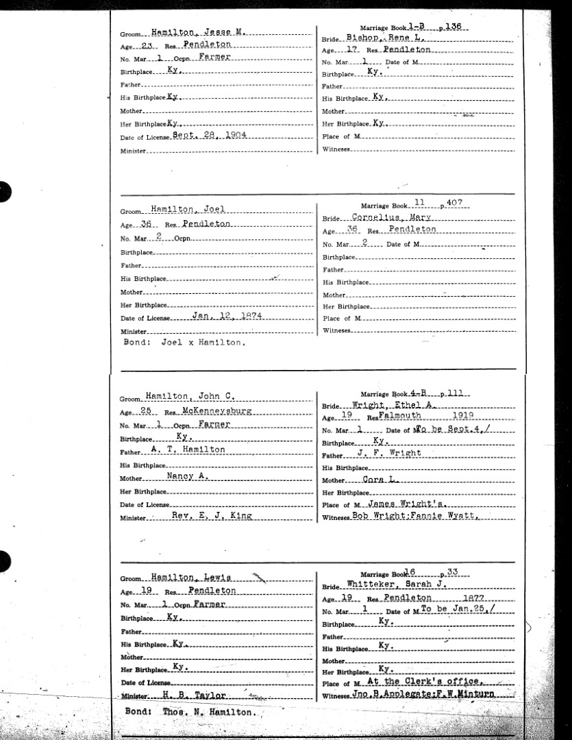 Pendleton County Marriages