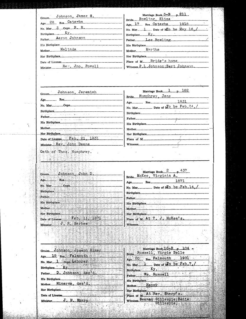 Pendleton County Marriages