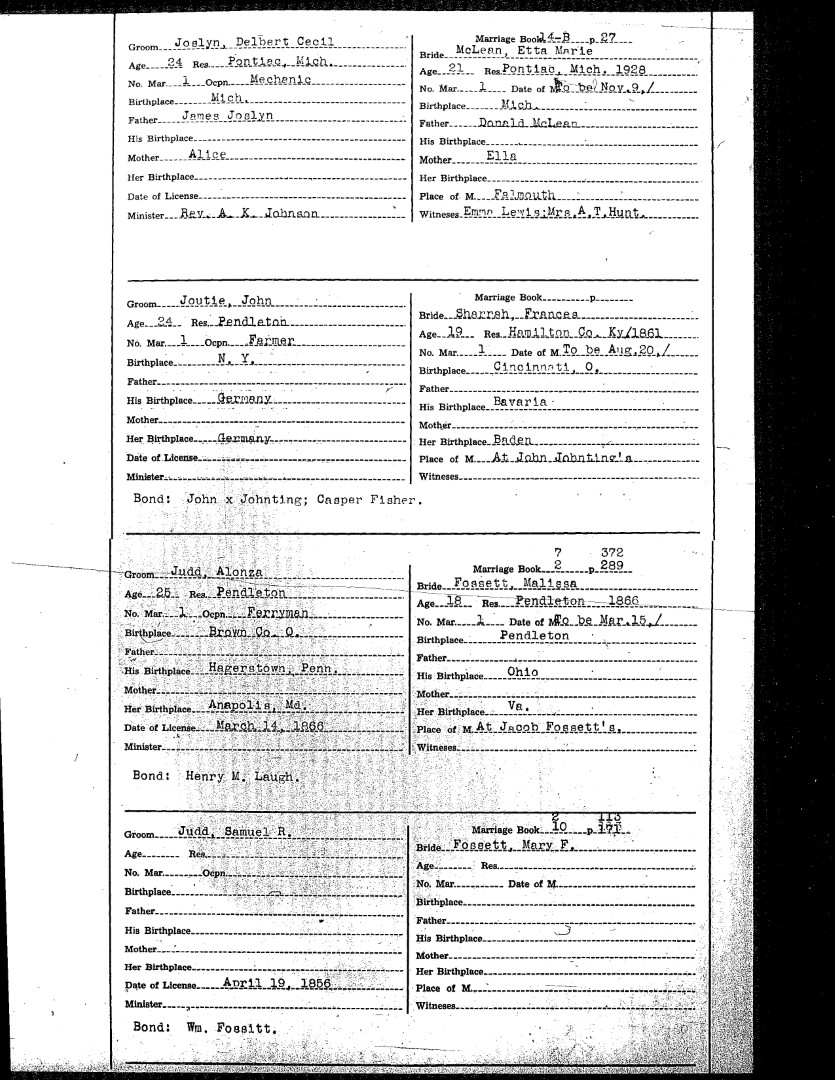 Pendleton County Marriages