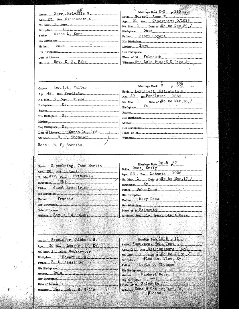 Pendleton County Marriages