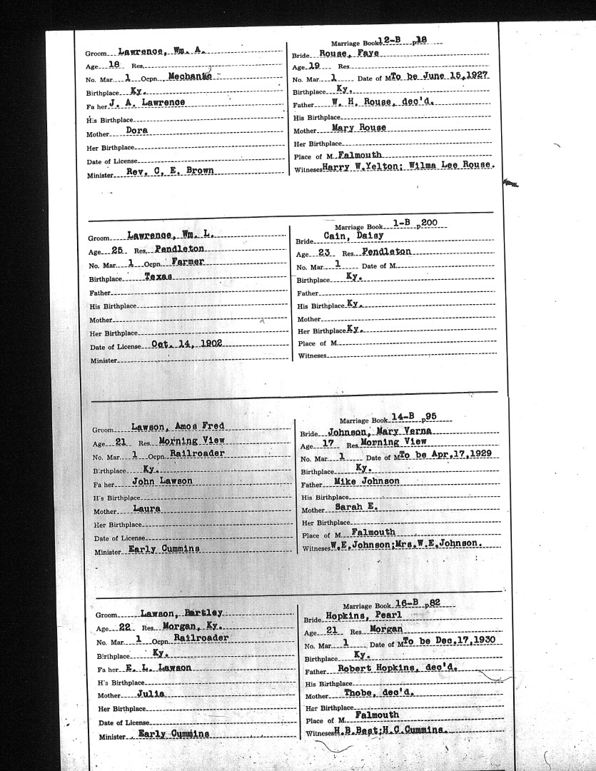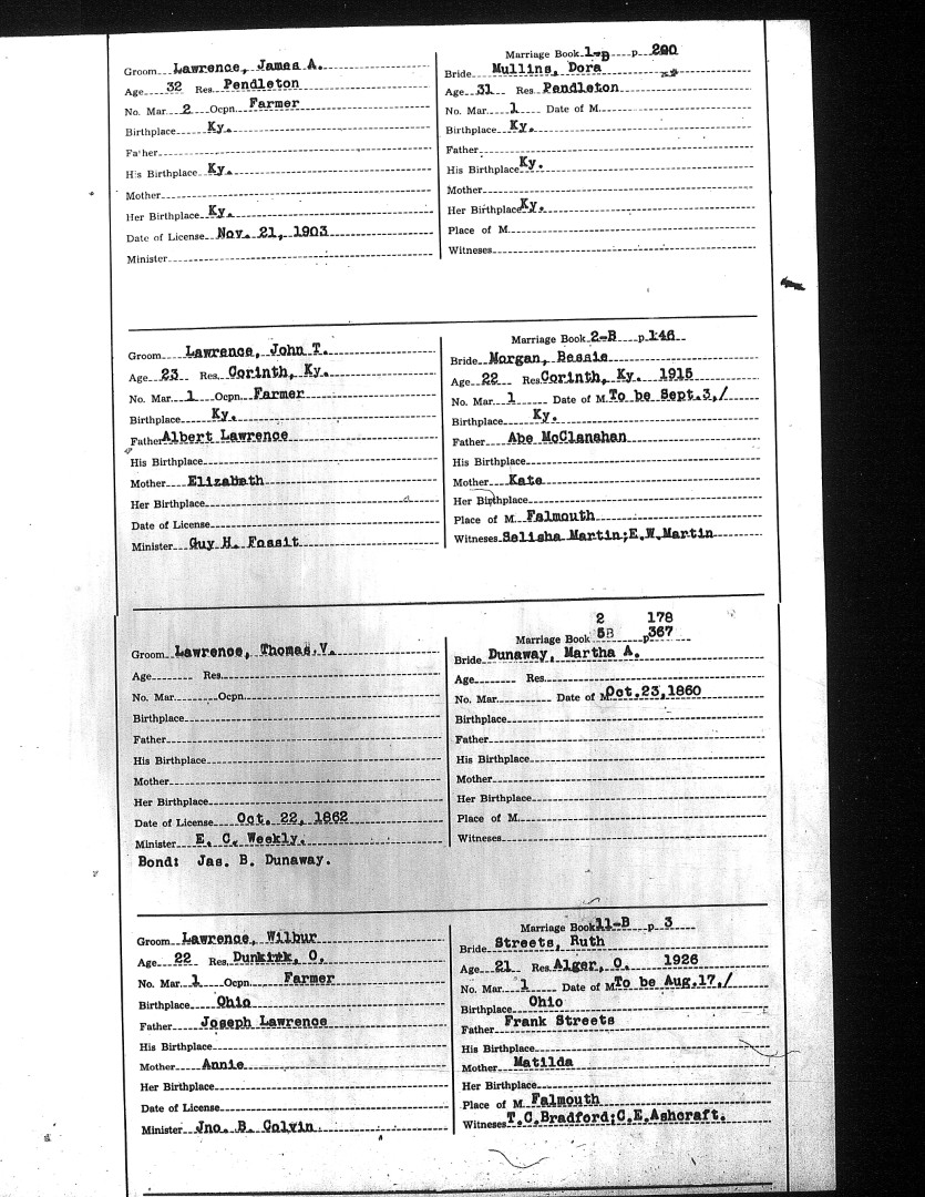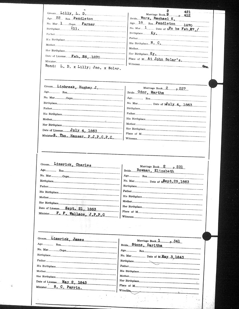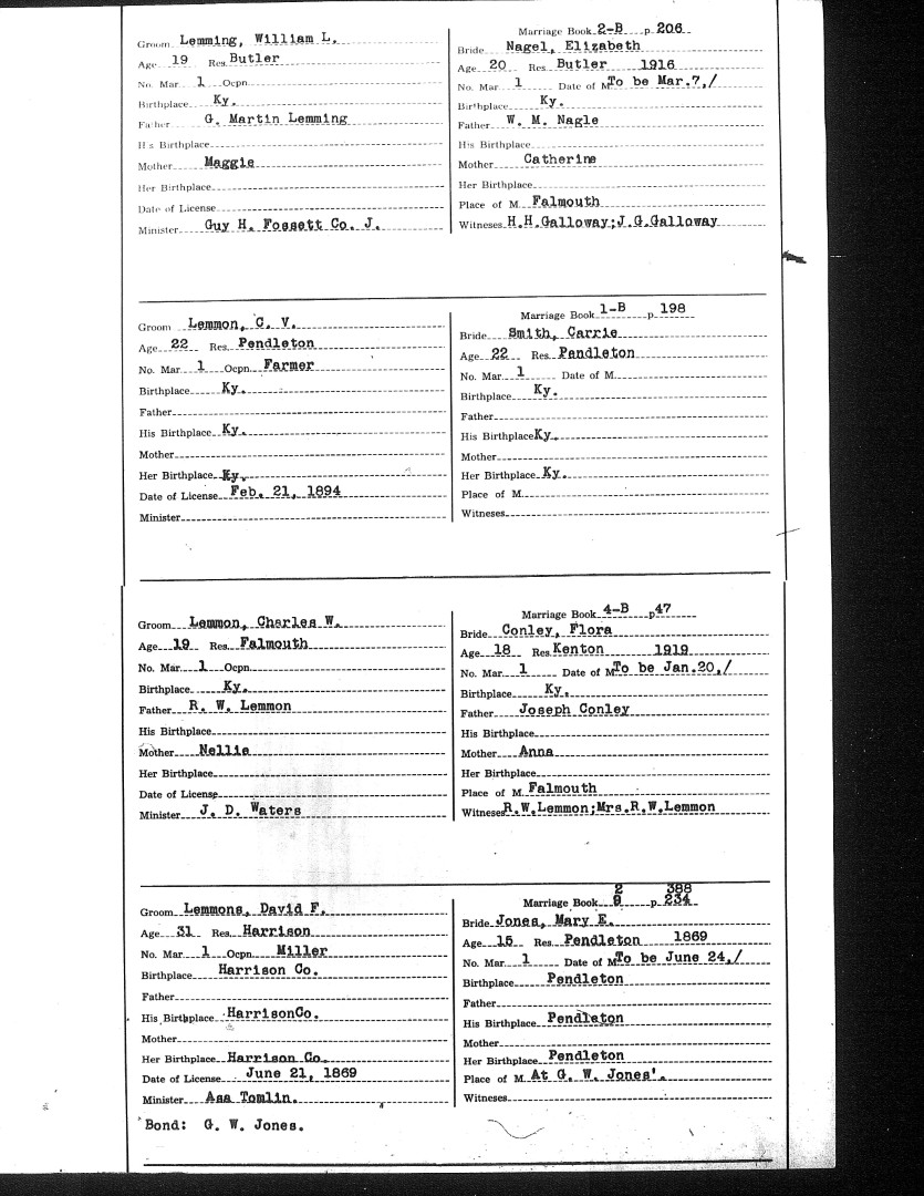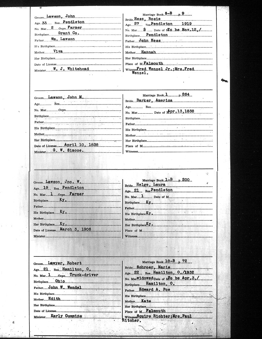 Pendleton County Marriages