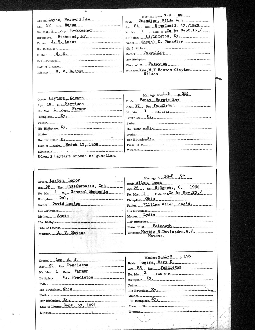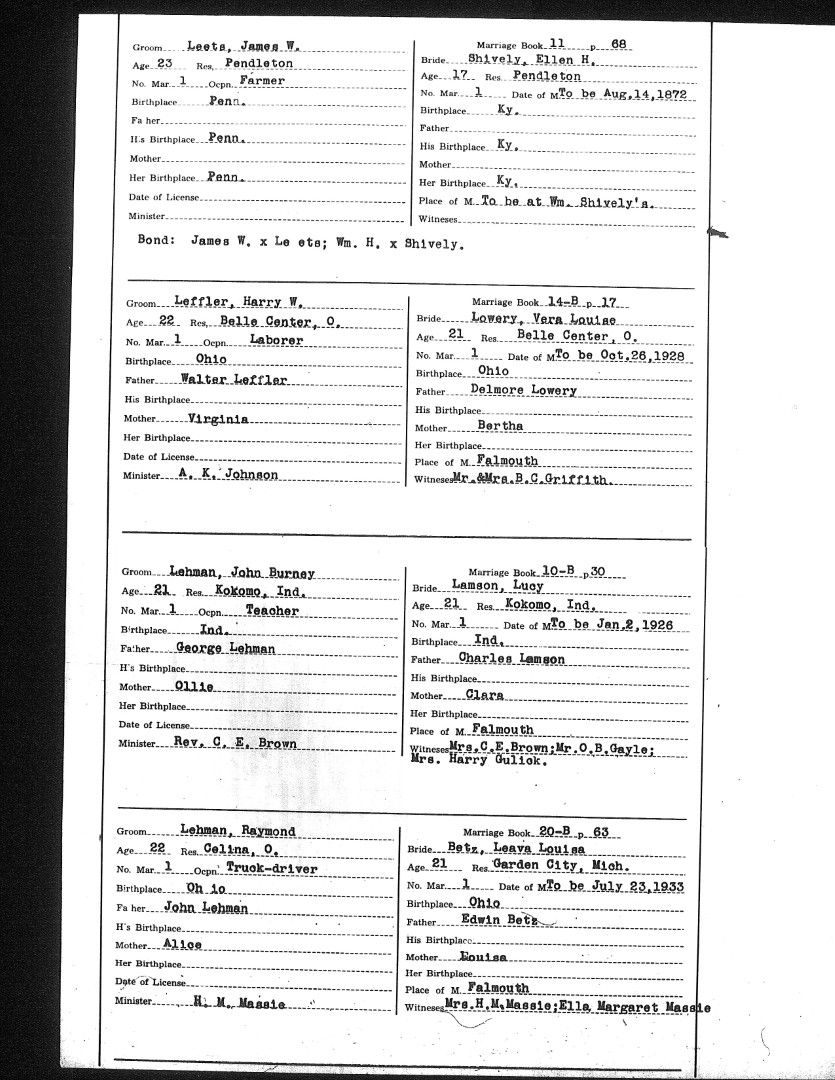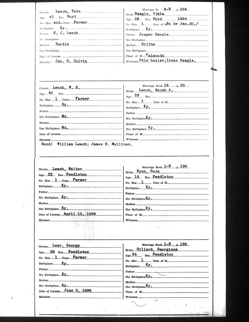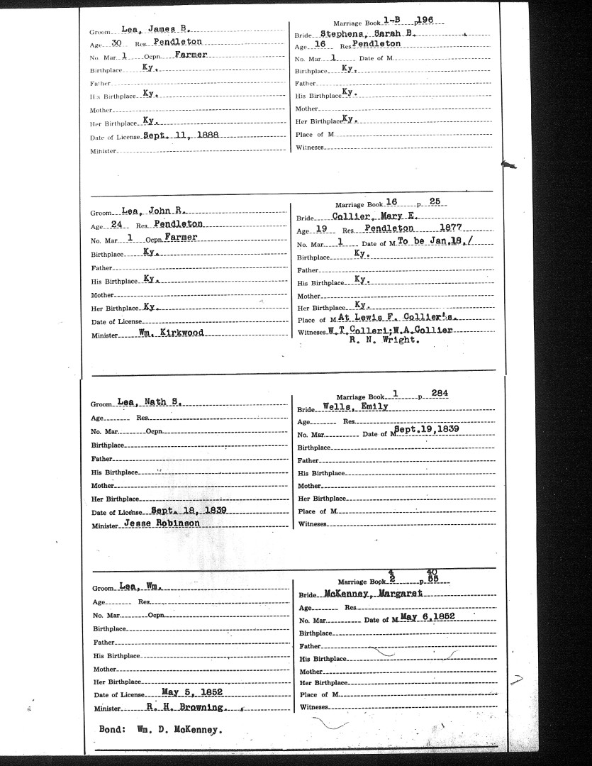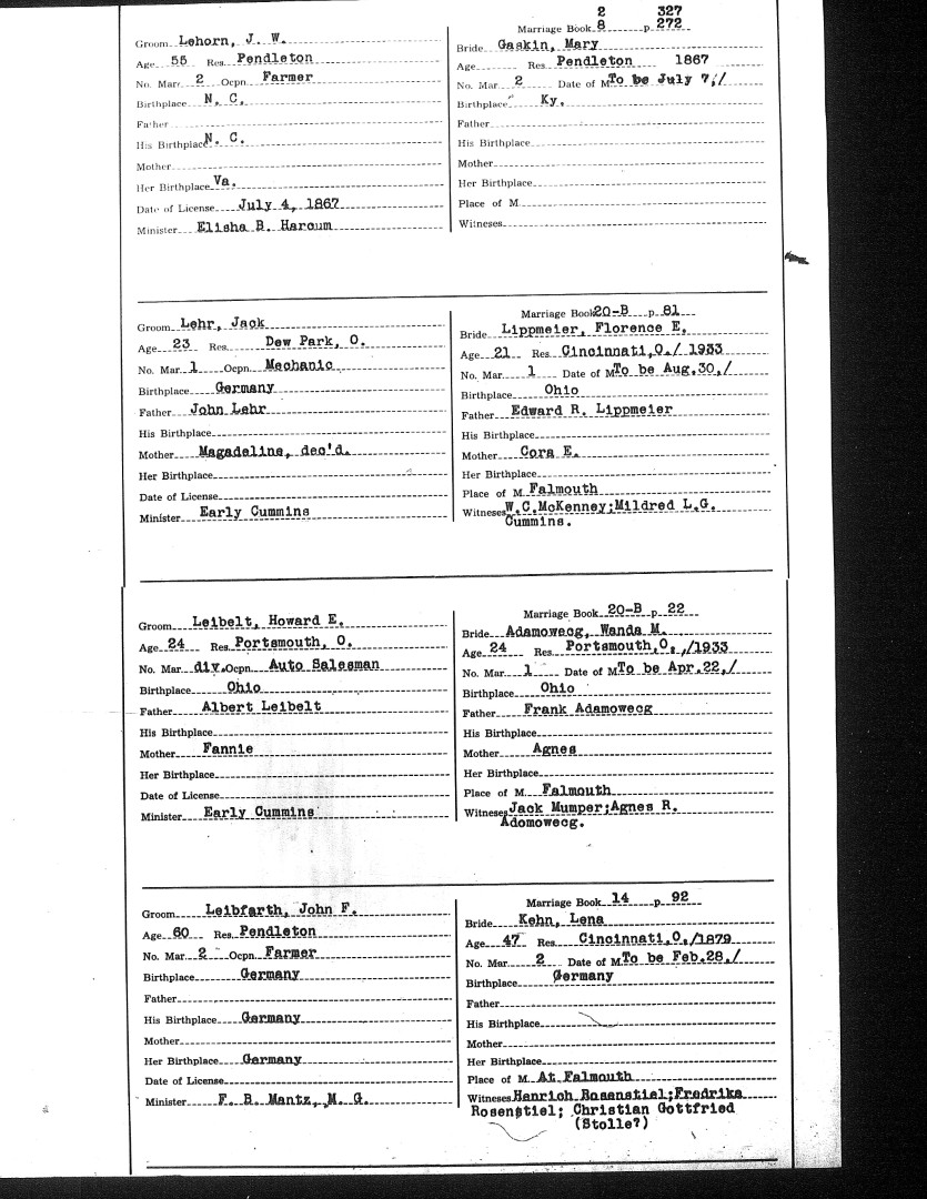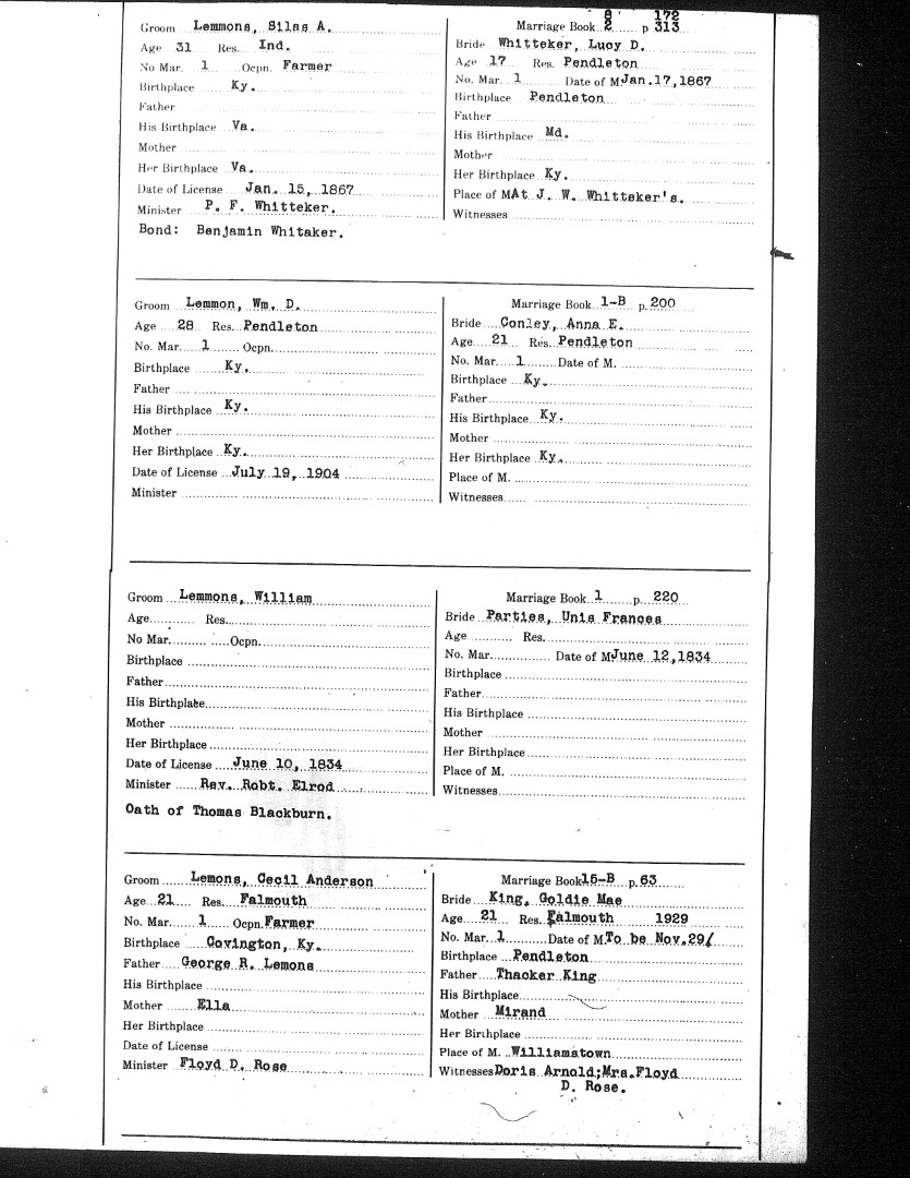 Pendleton County Marriages
