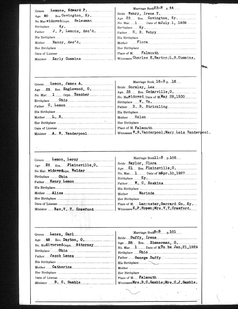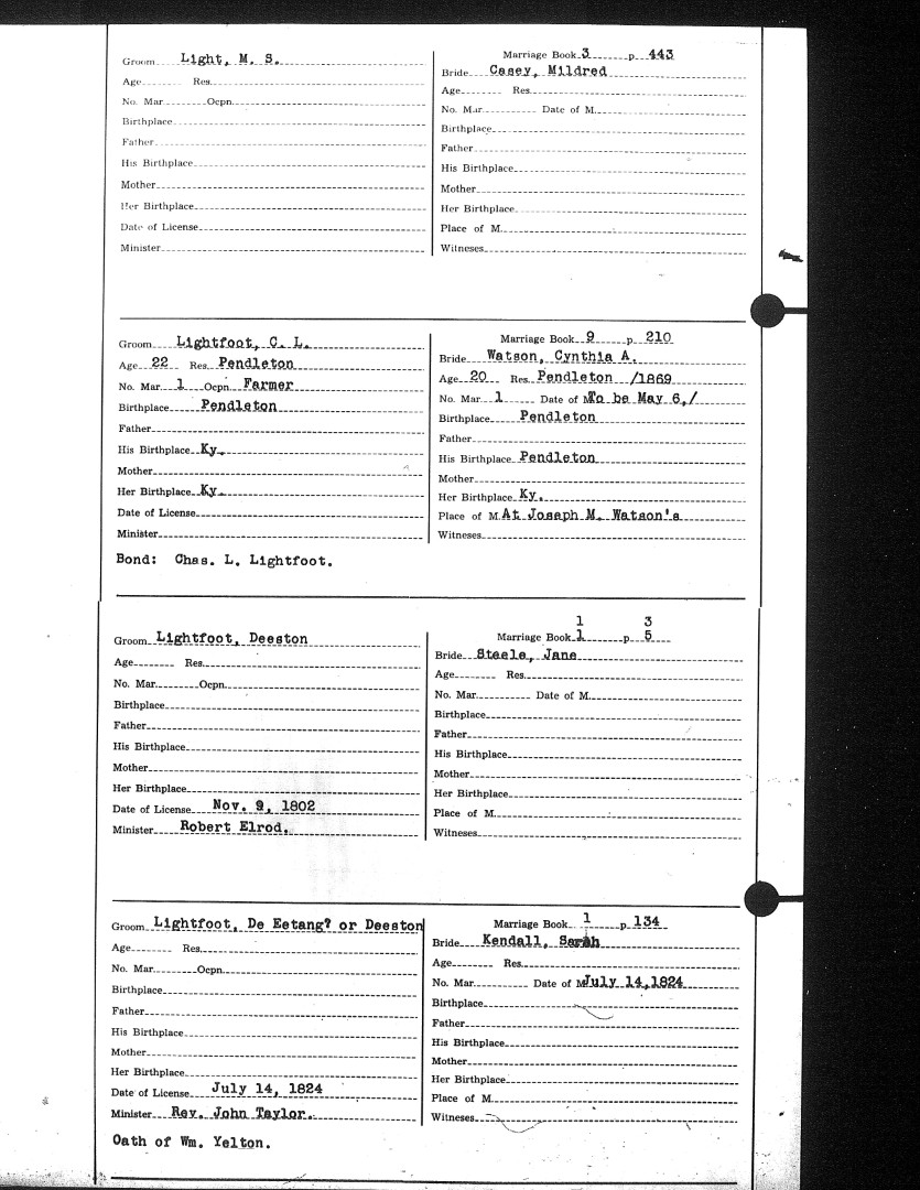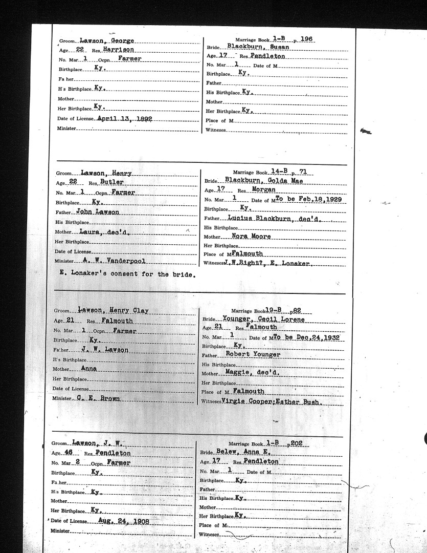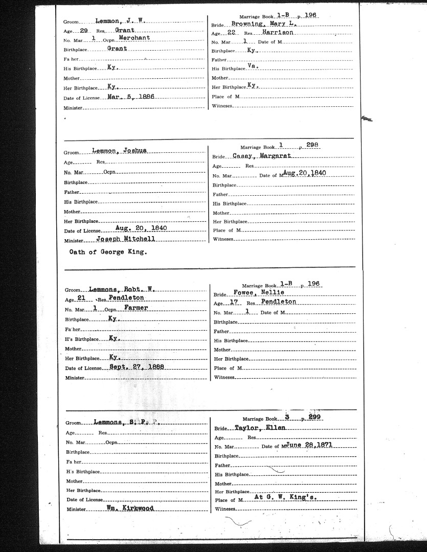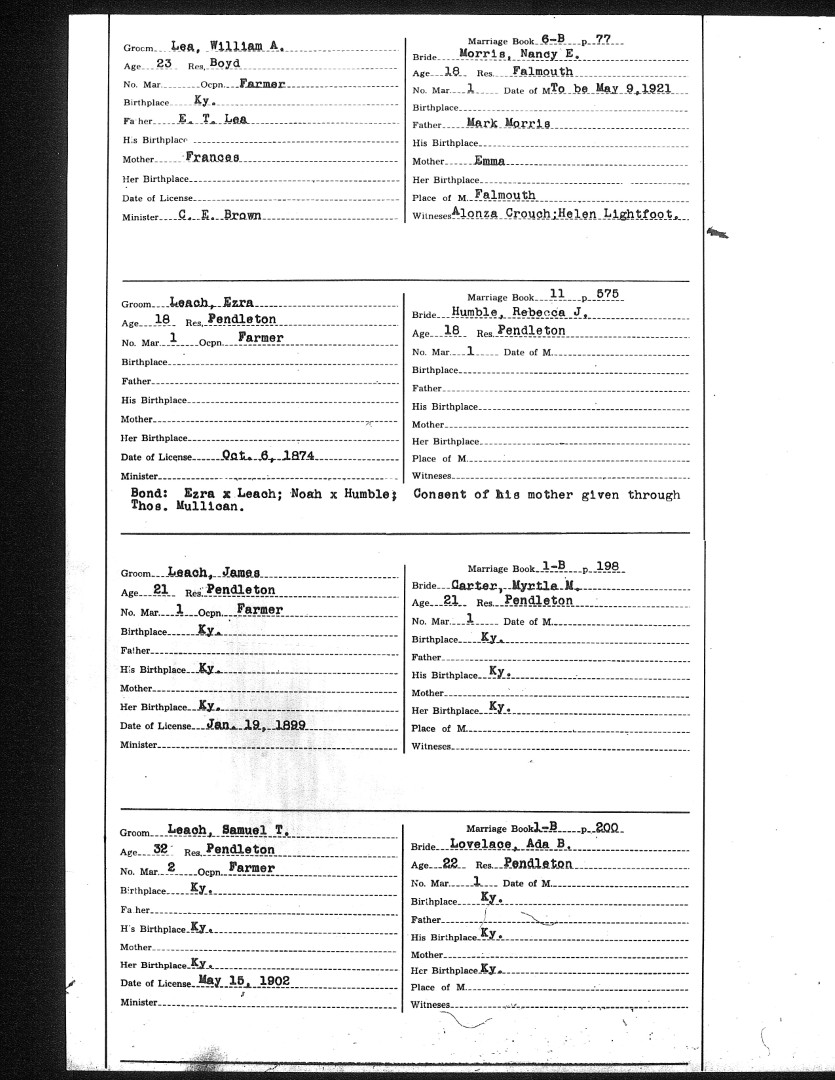 Pendleton County Marriages