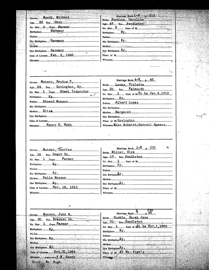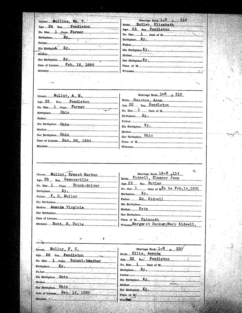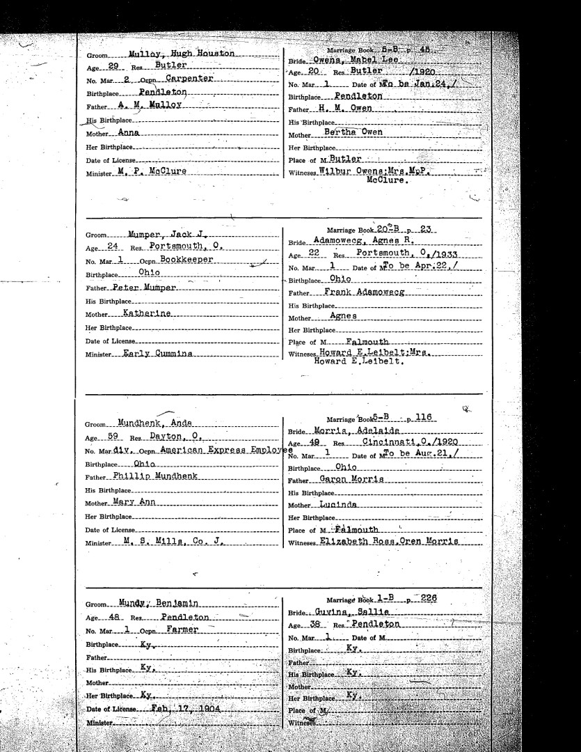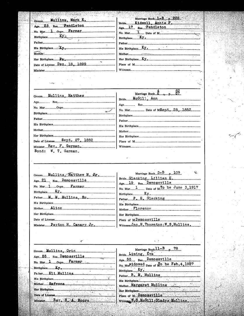 Pendleton County Marriages