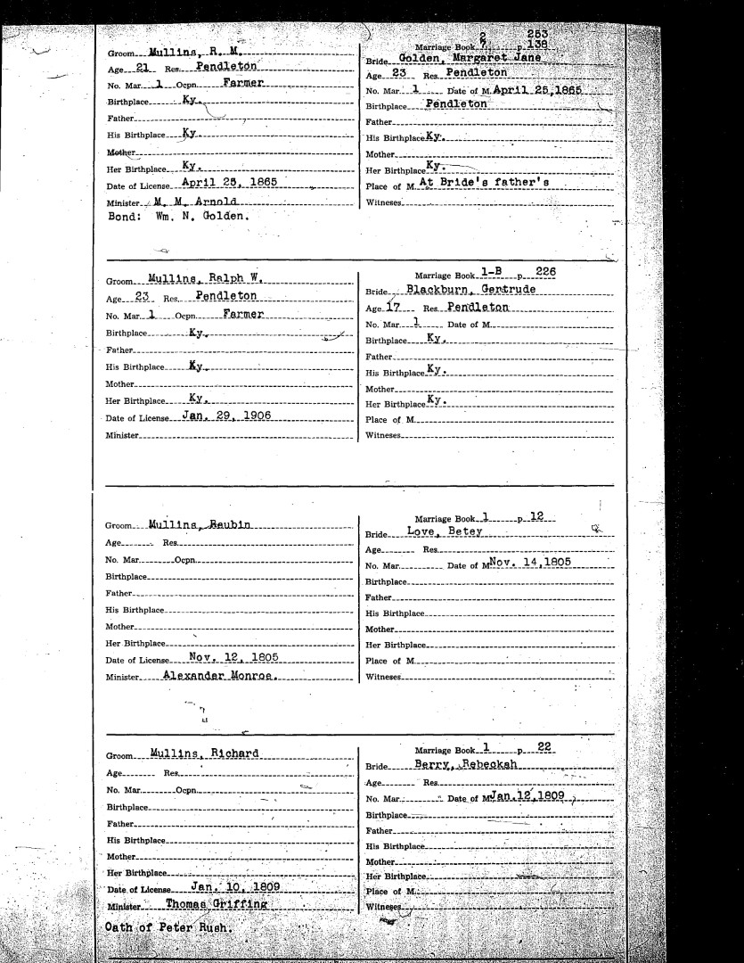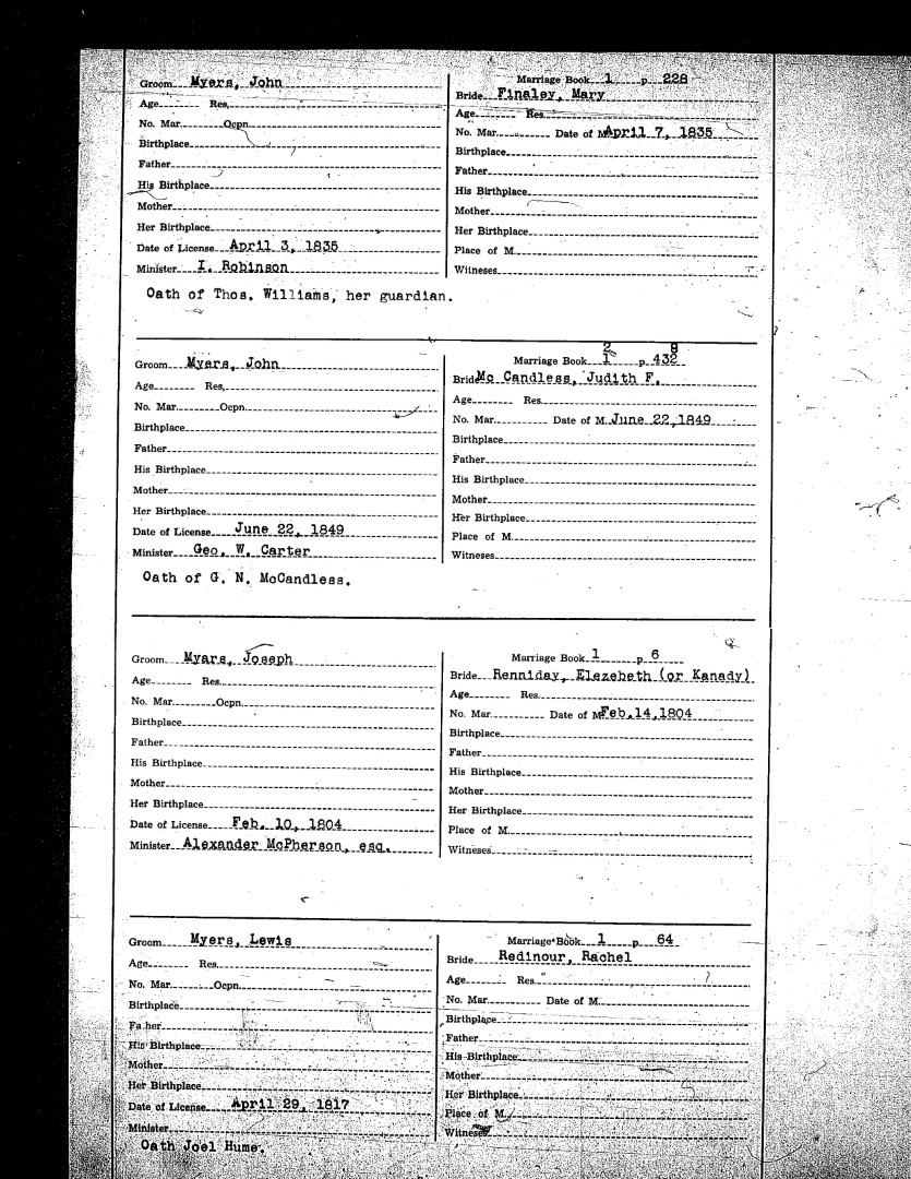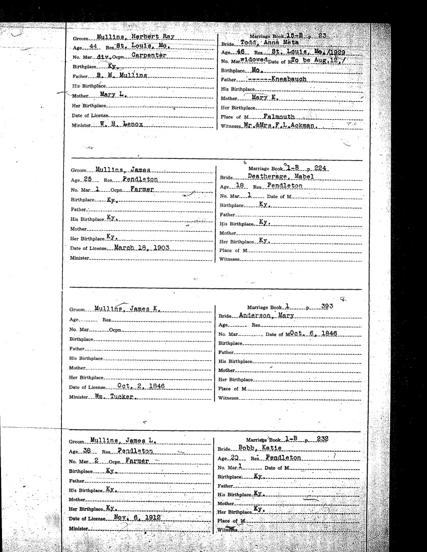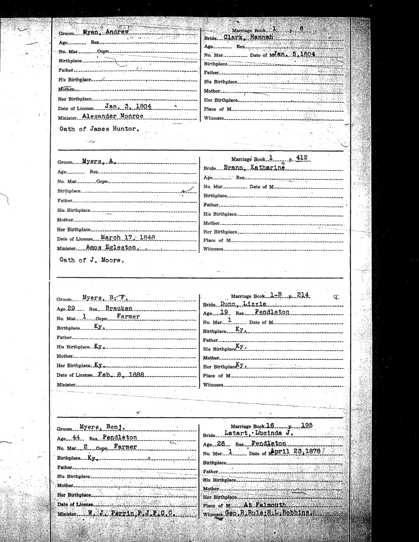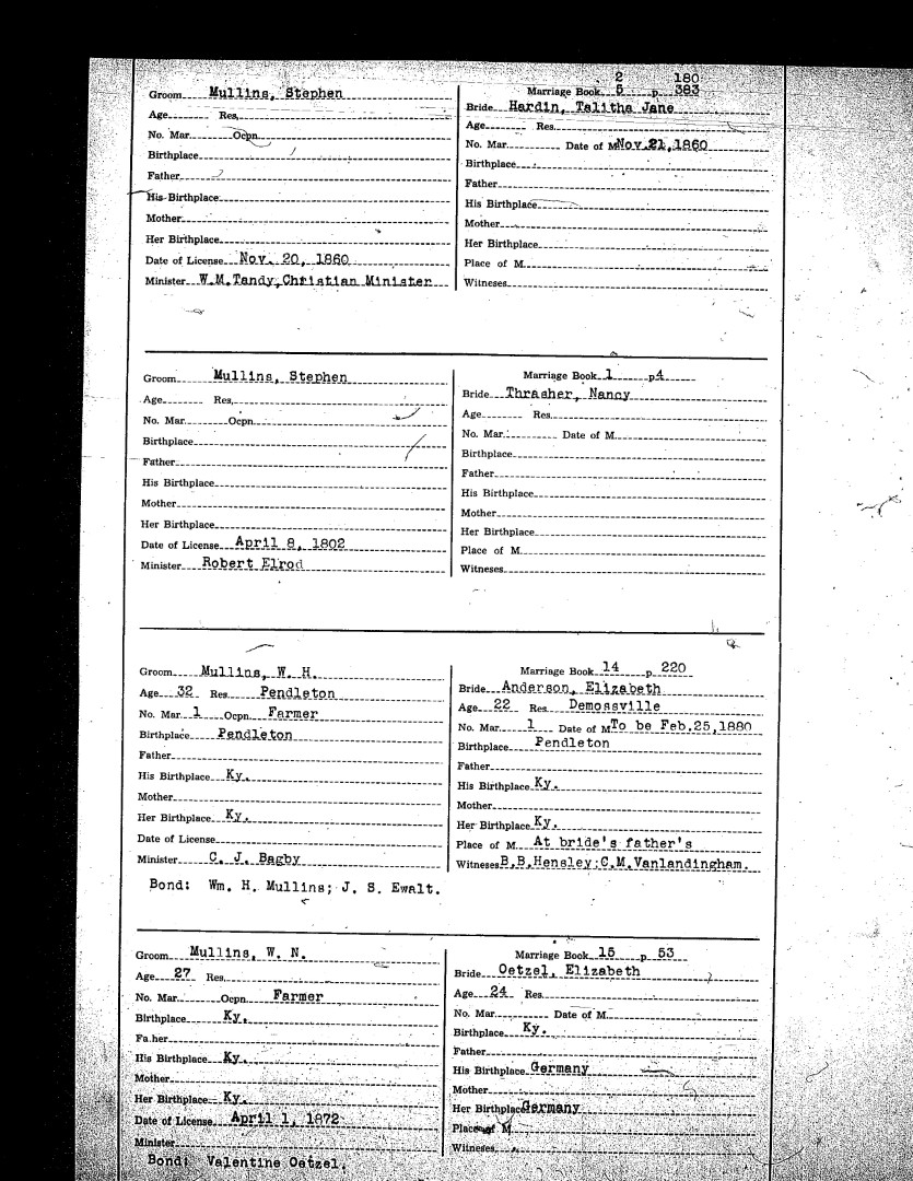 Pendleton County Marriages