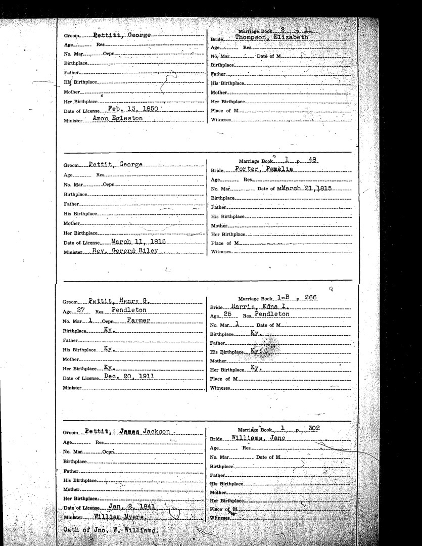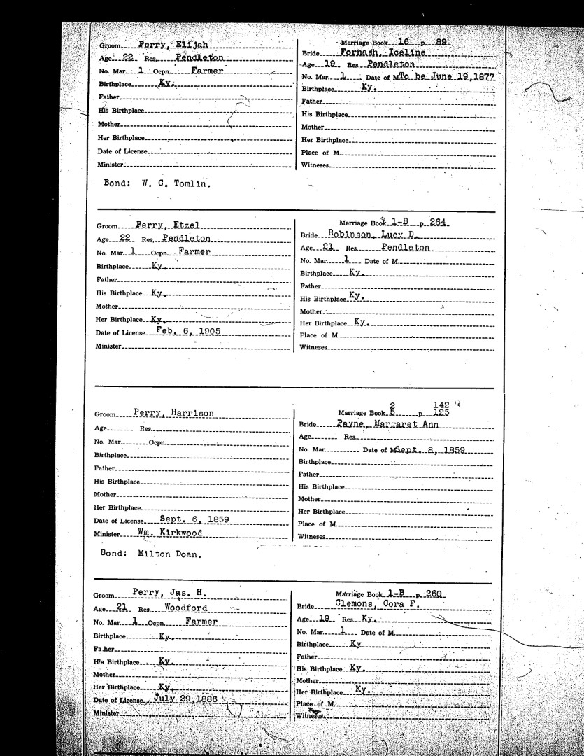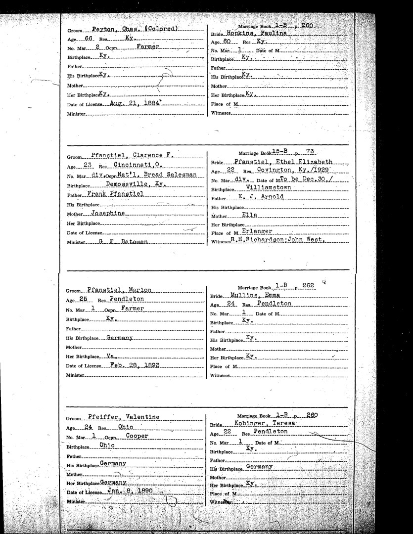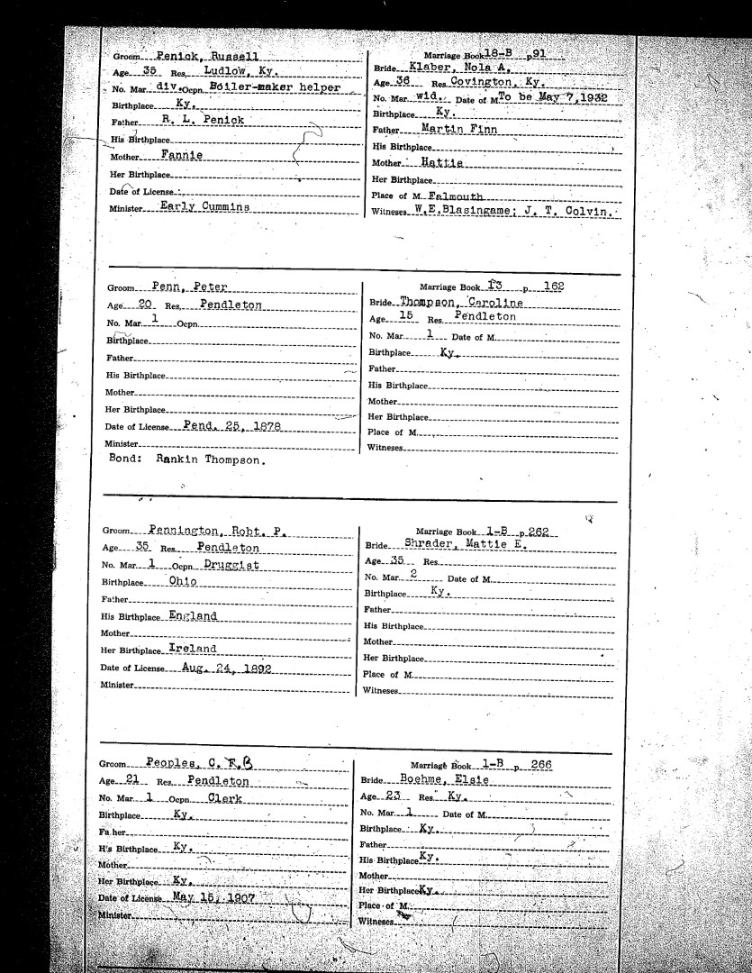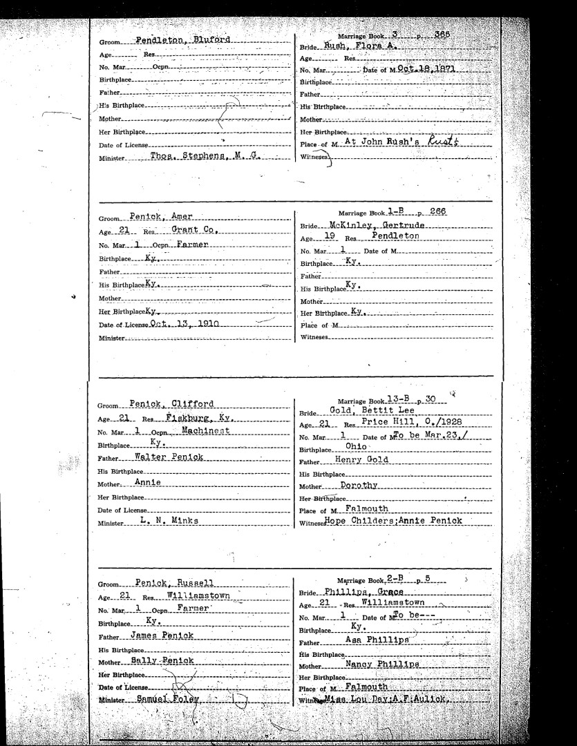 Pendleton County Marriages