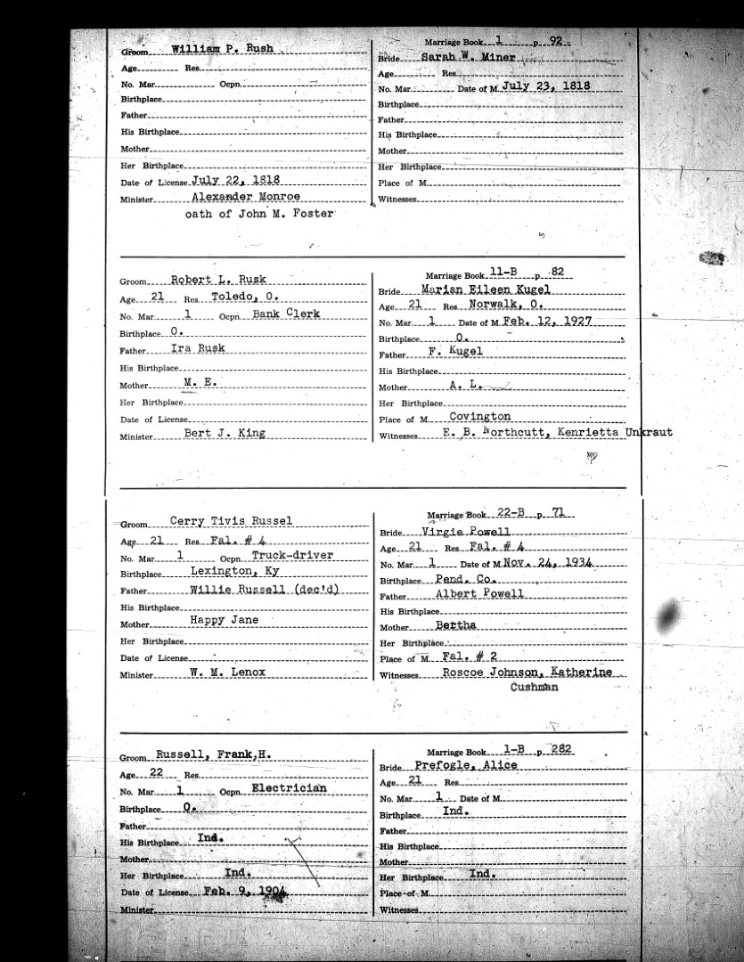 Pendleton County Marriages