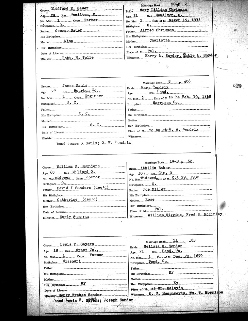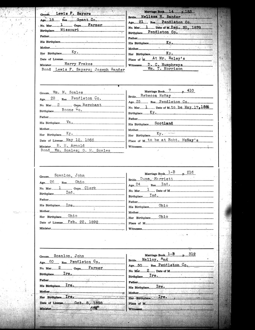 Pendleton County Marriages