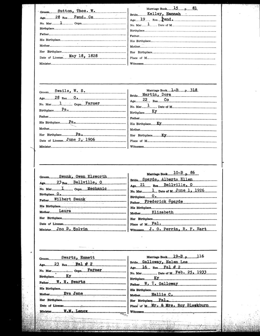 Pendleton County Marriages