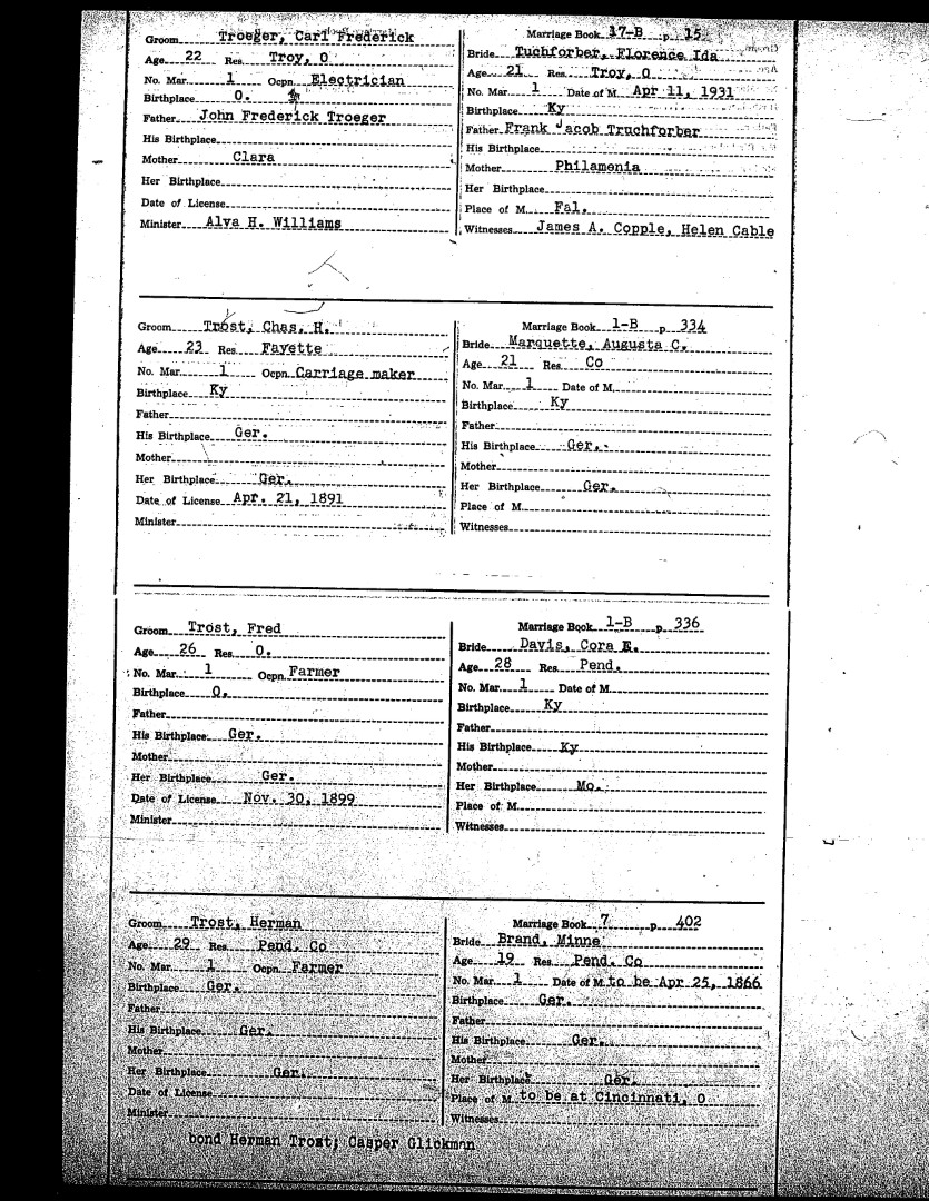 Pendleton County Marriages