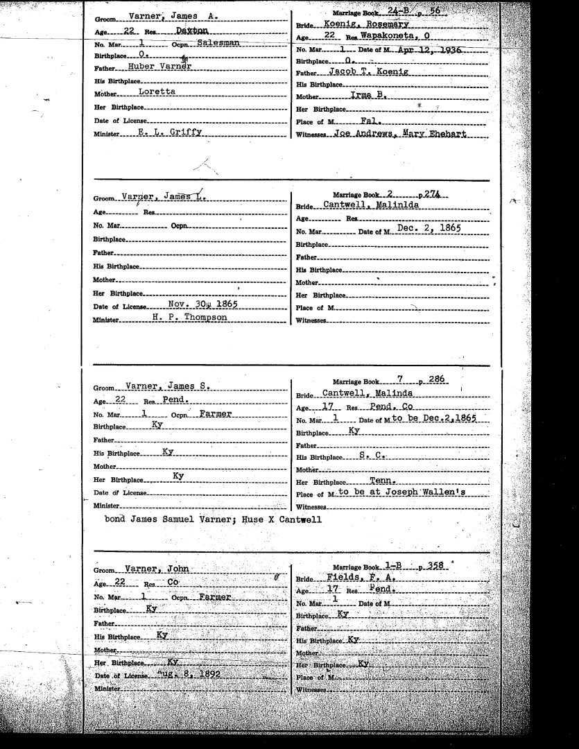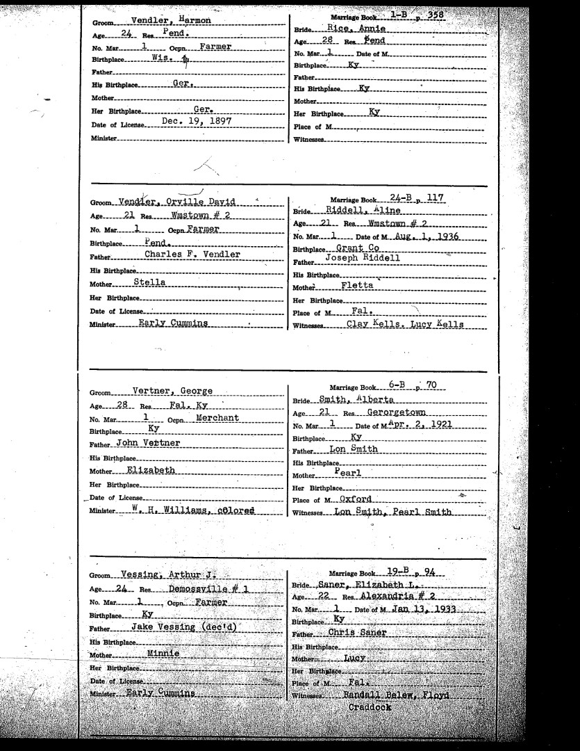 Pendleton County Marriages