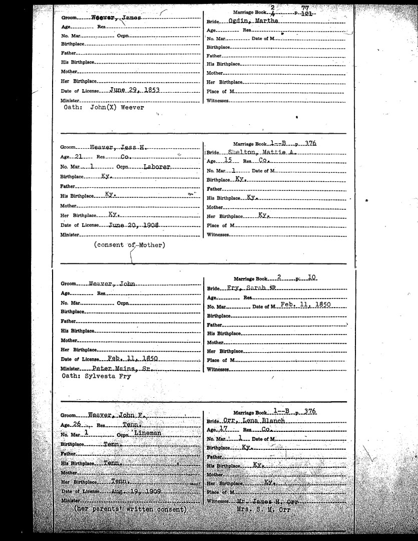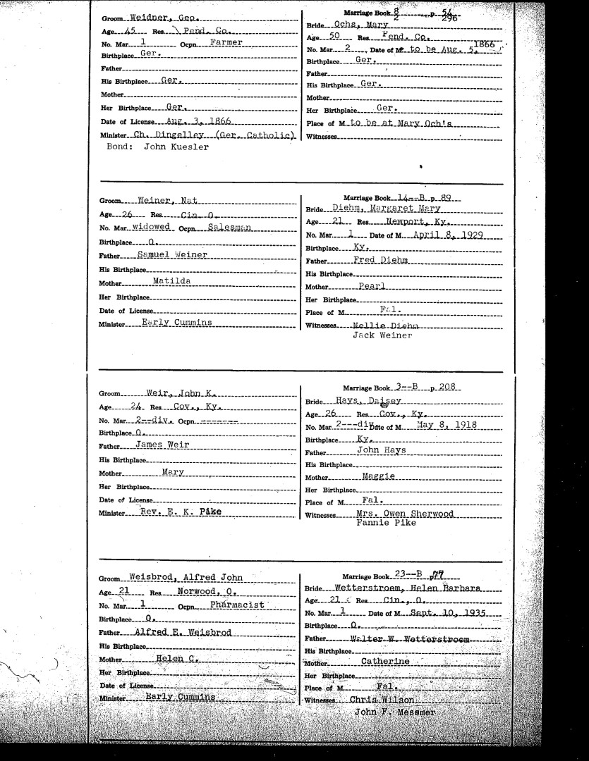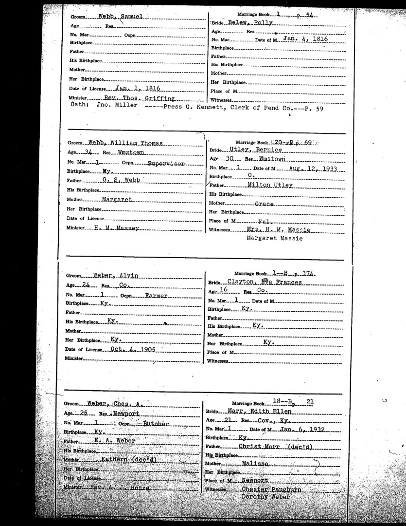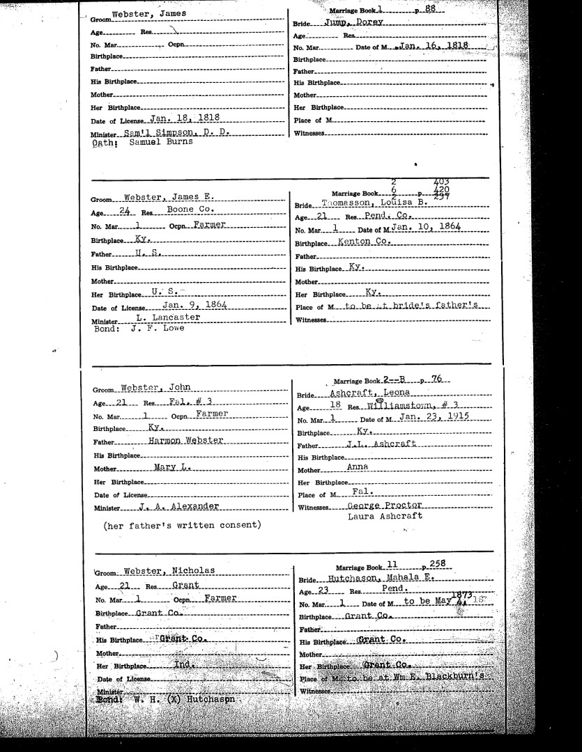 Pendleton County Marriages