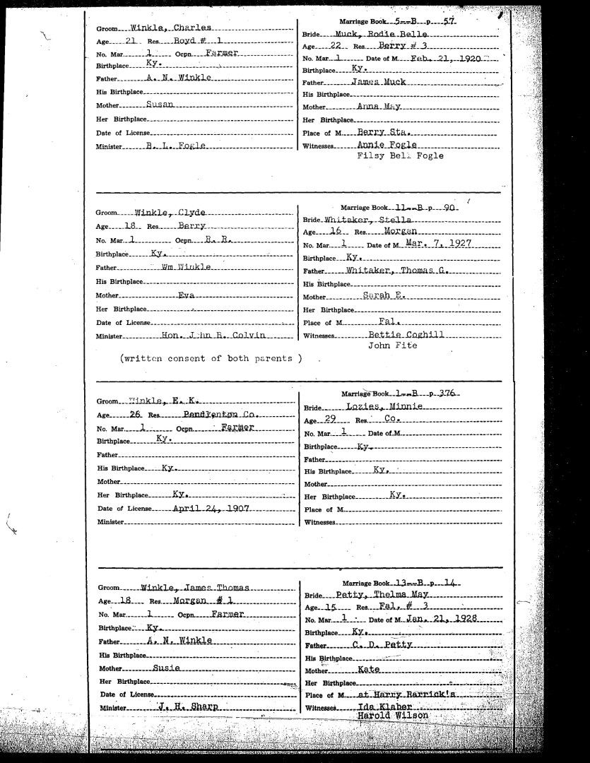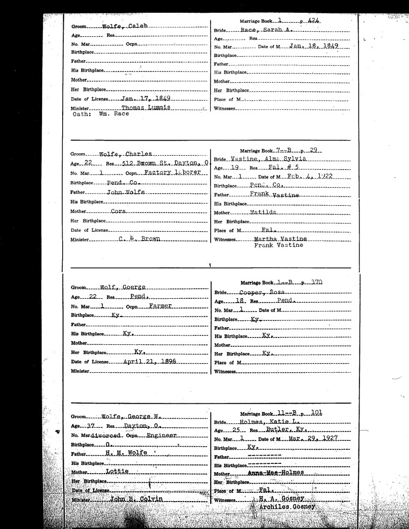 Pendleton County Marriages