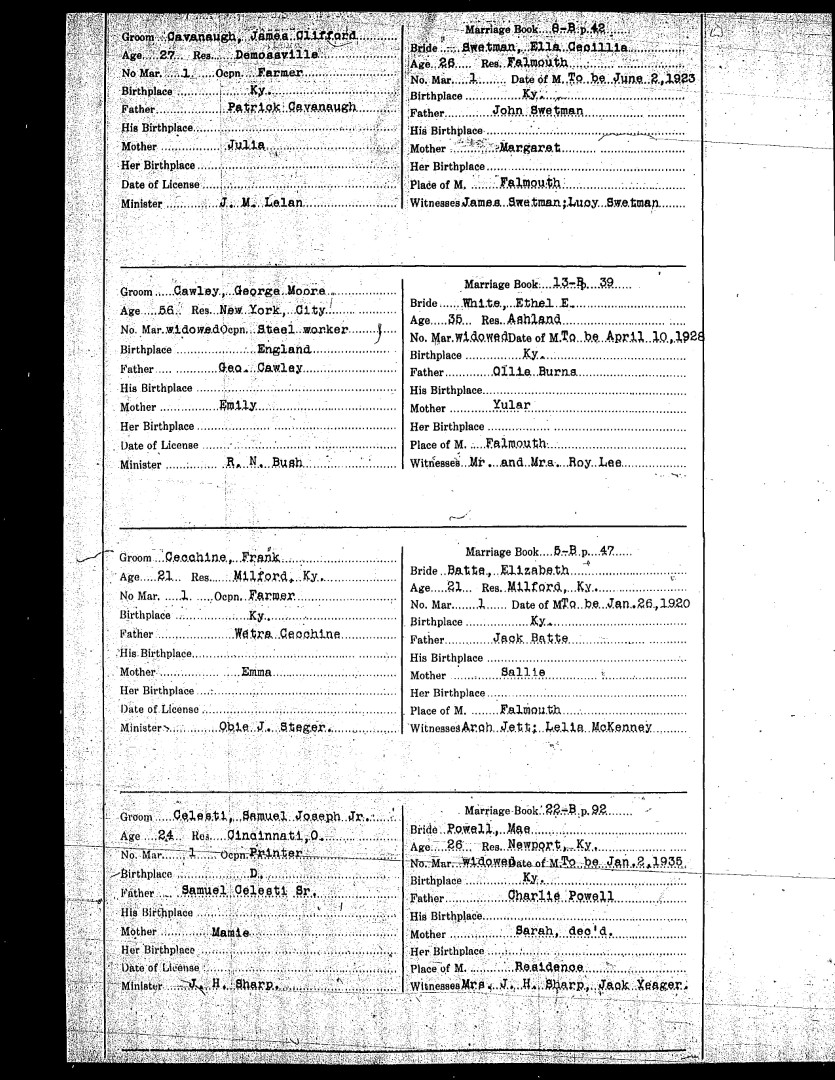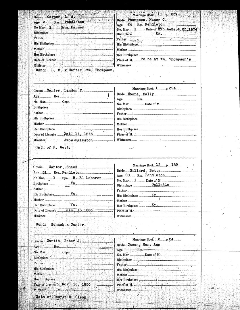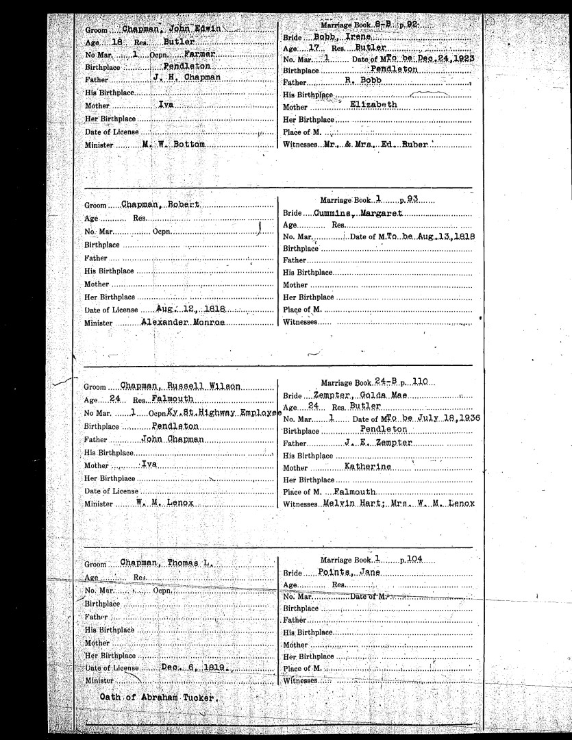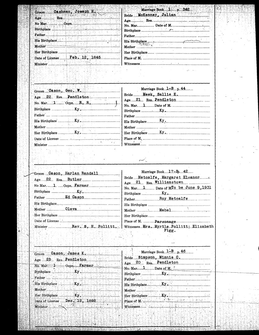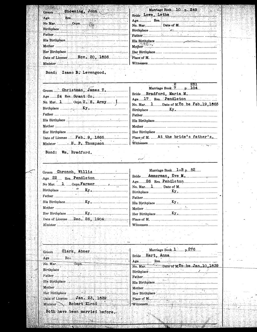 Pendleton County Marriages