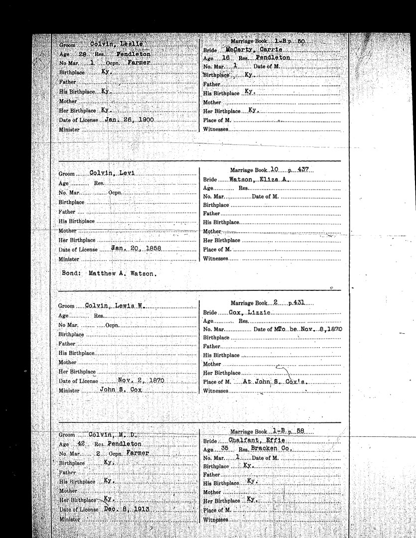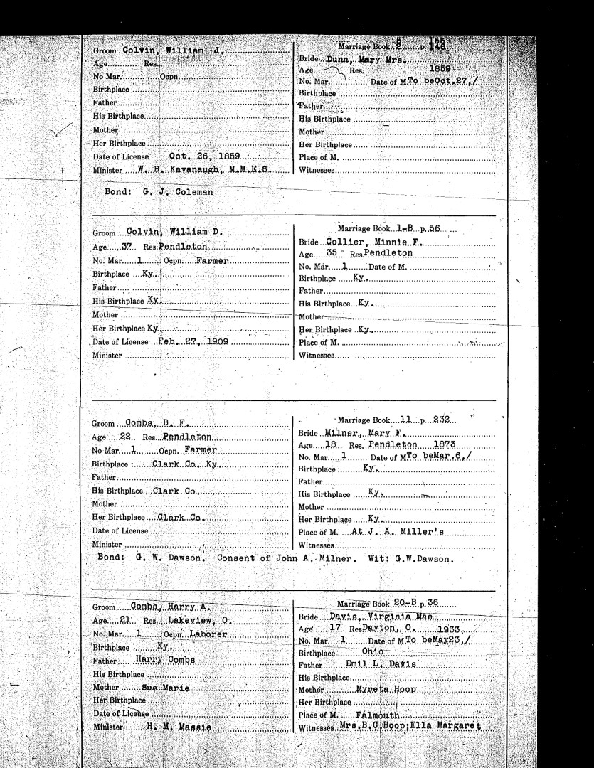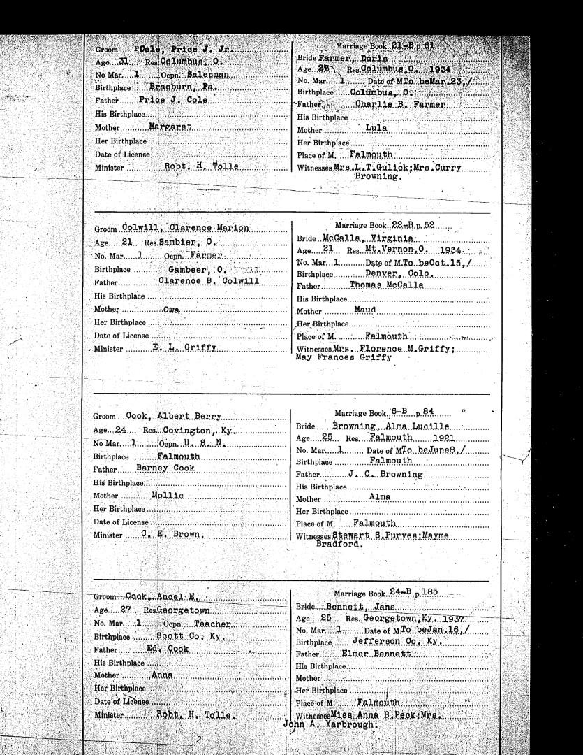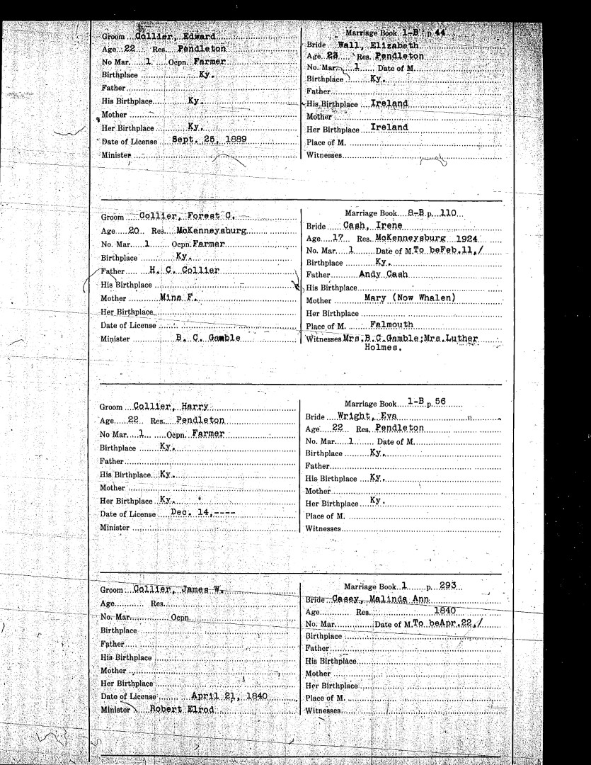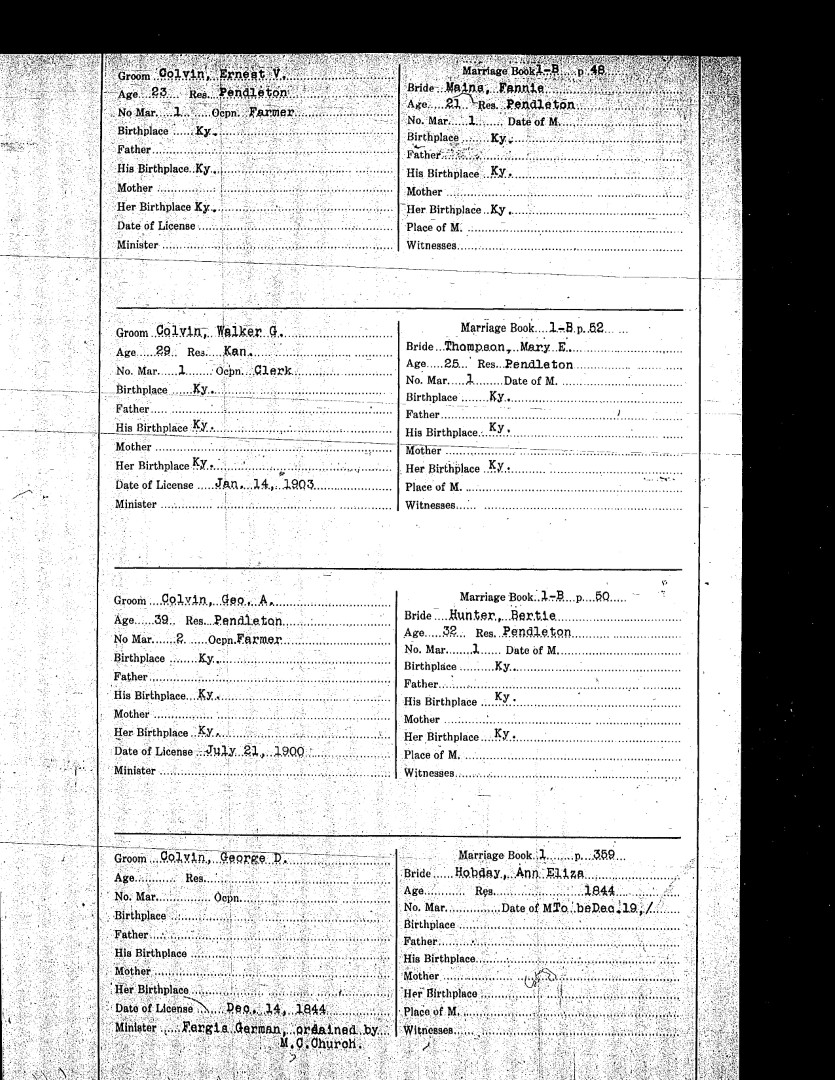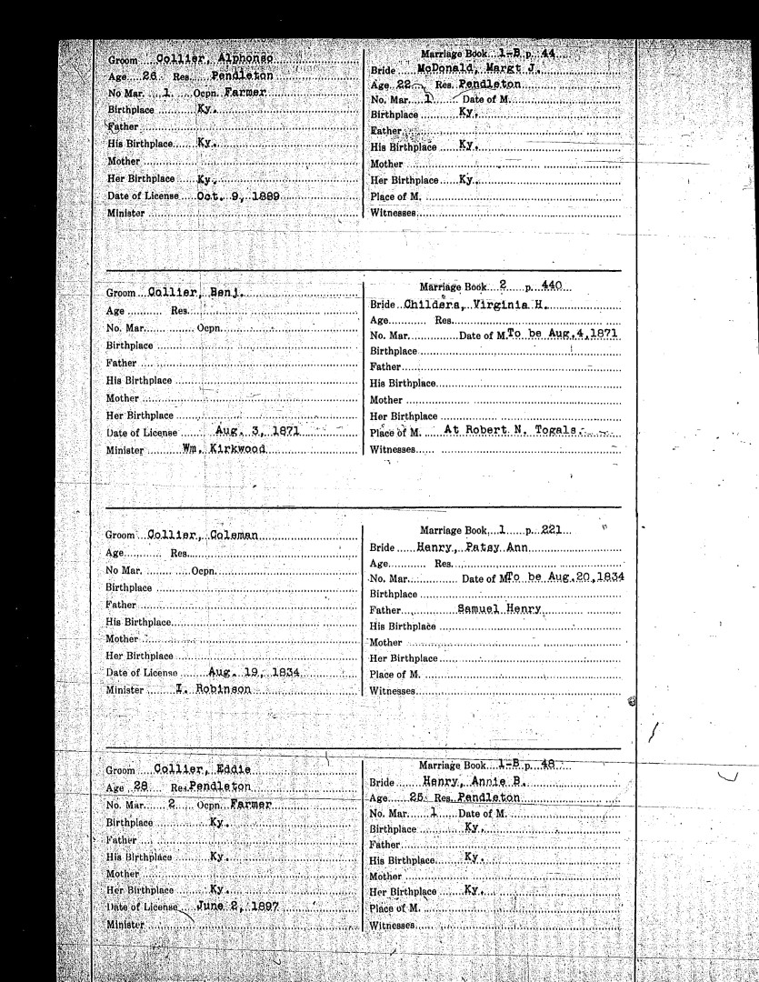 Pendleton County Marriages