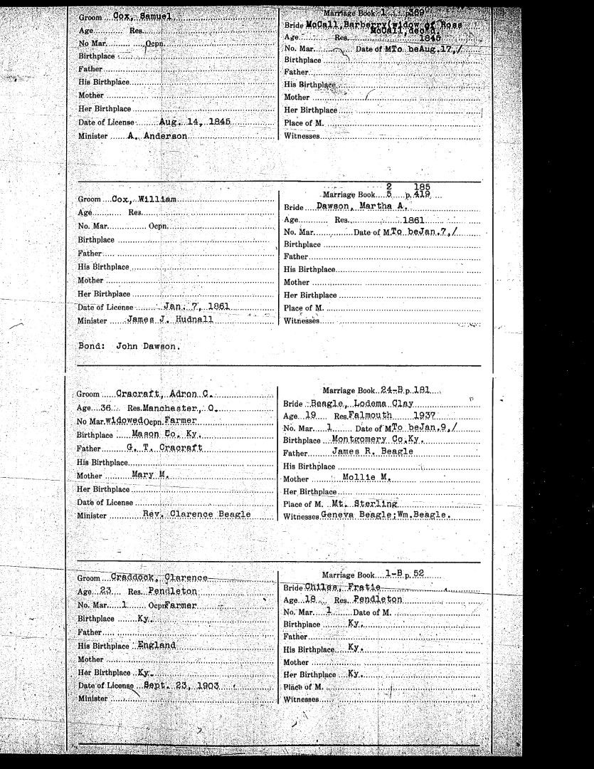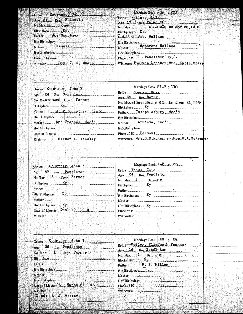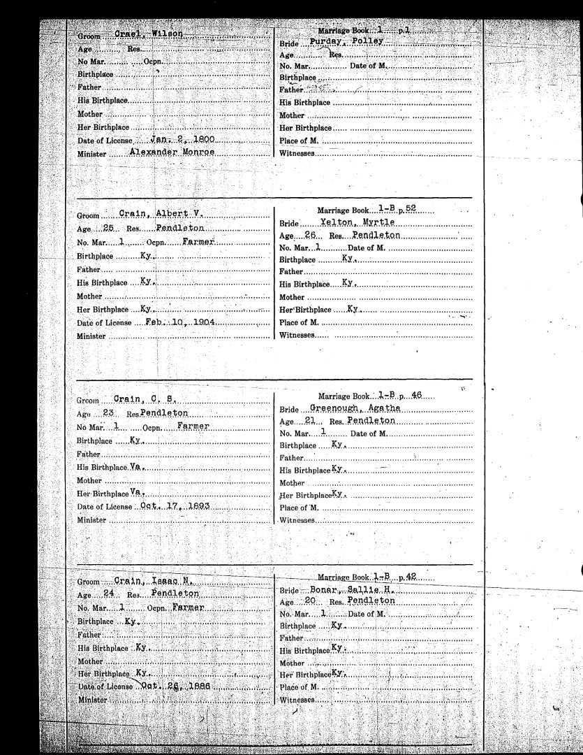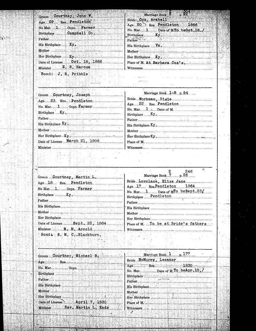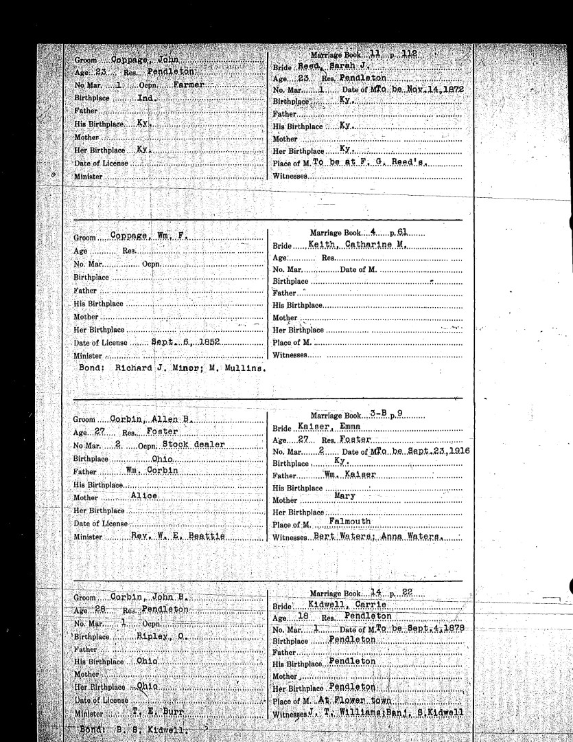 Pendleton County Marriages