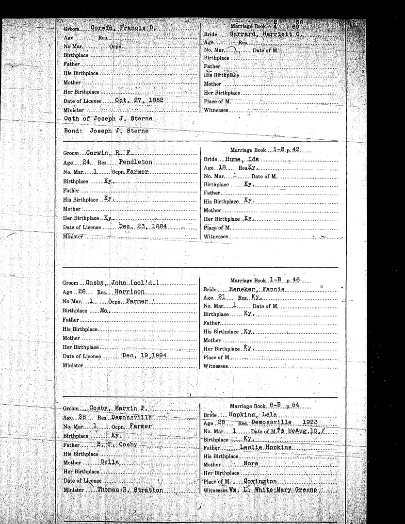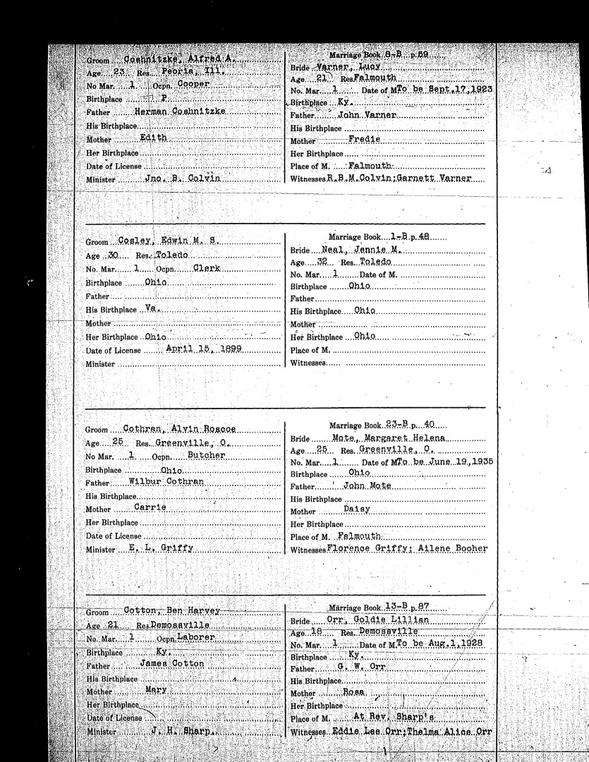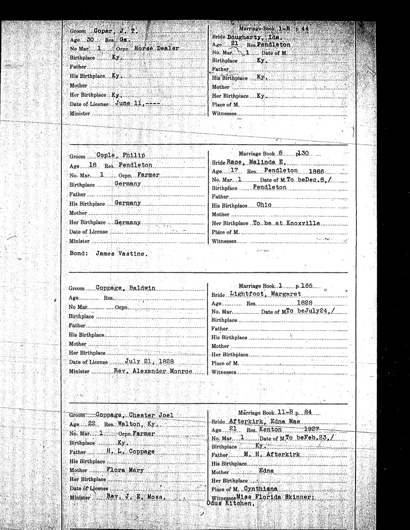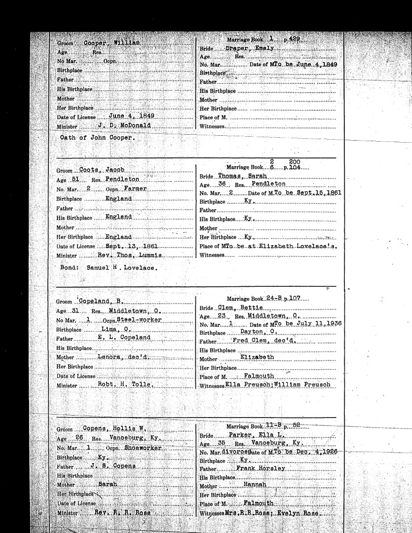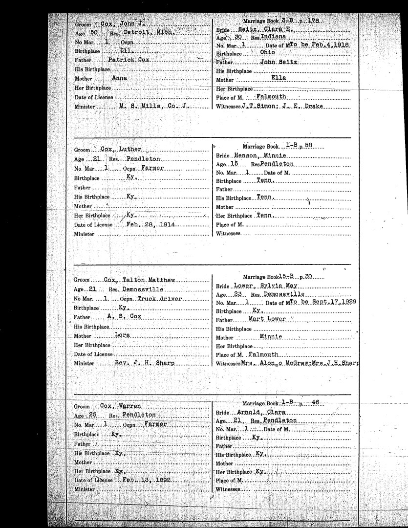 Pendleton County Marriages
