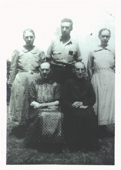Left to right: standing, Forence Etta Stapp McElroy Turner, 1885-1959, Lawrence Elmer Stapp, 1886-1974, Lula Stapp, 1890-1956. Seated: Mary Ellen Pierce Stapp, 1862-1948 and Minnie Stapp, 1881-1975. Mary Ellen Stapp is the mother of all others. Submitted By: Euline Penix