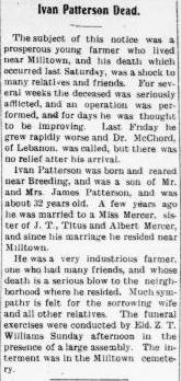 Ivan Patterson obituary, Adair County News 28 January 1914