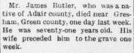 James Butler death notice, 7 January 1914 Adair County News