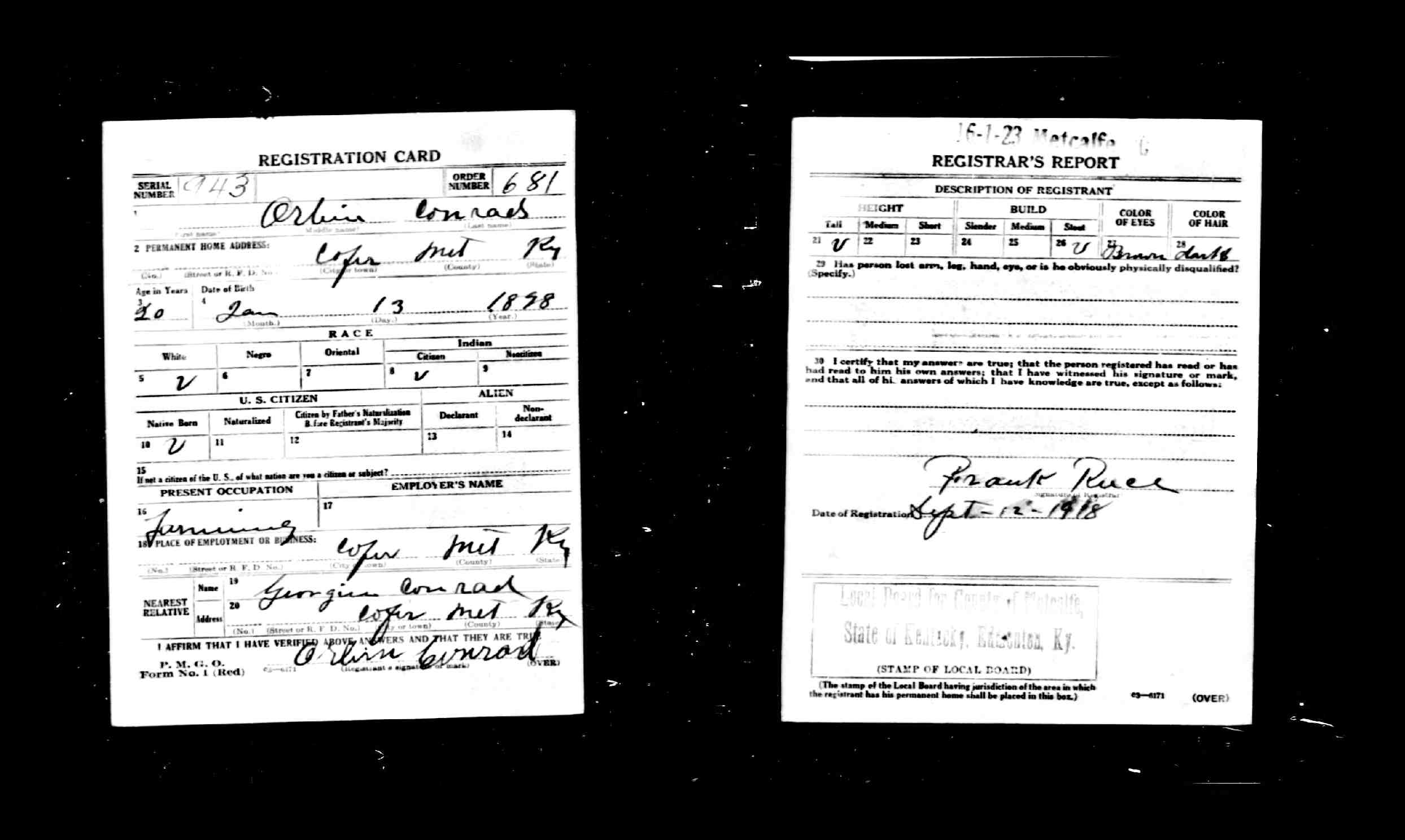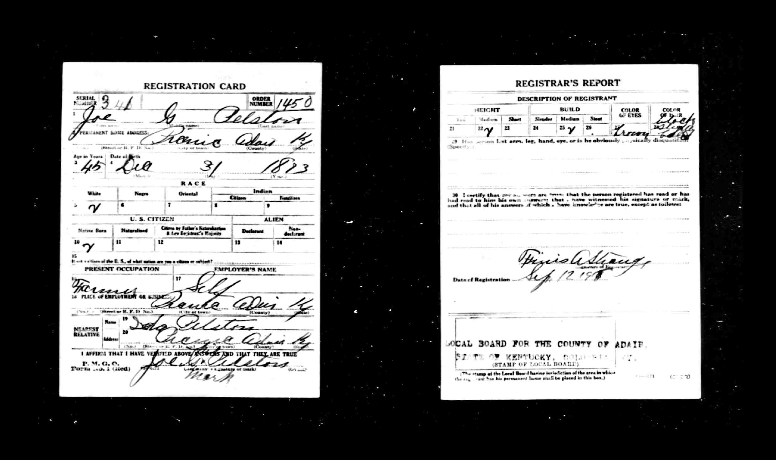 NEW Burton Men from Adair County that registered for the draft of World War I