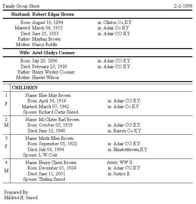 Adair County KYGenWeb Family Group Sheets Project
