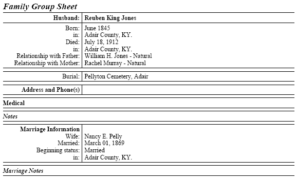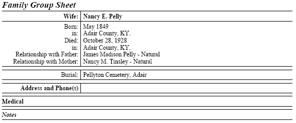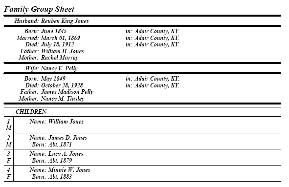 Adair County KYGenWeb Family Group Sheets Project