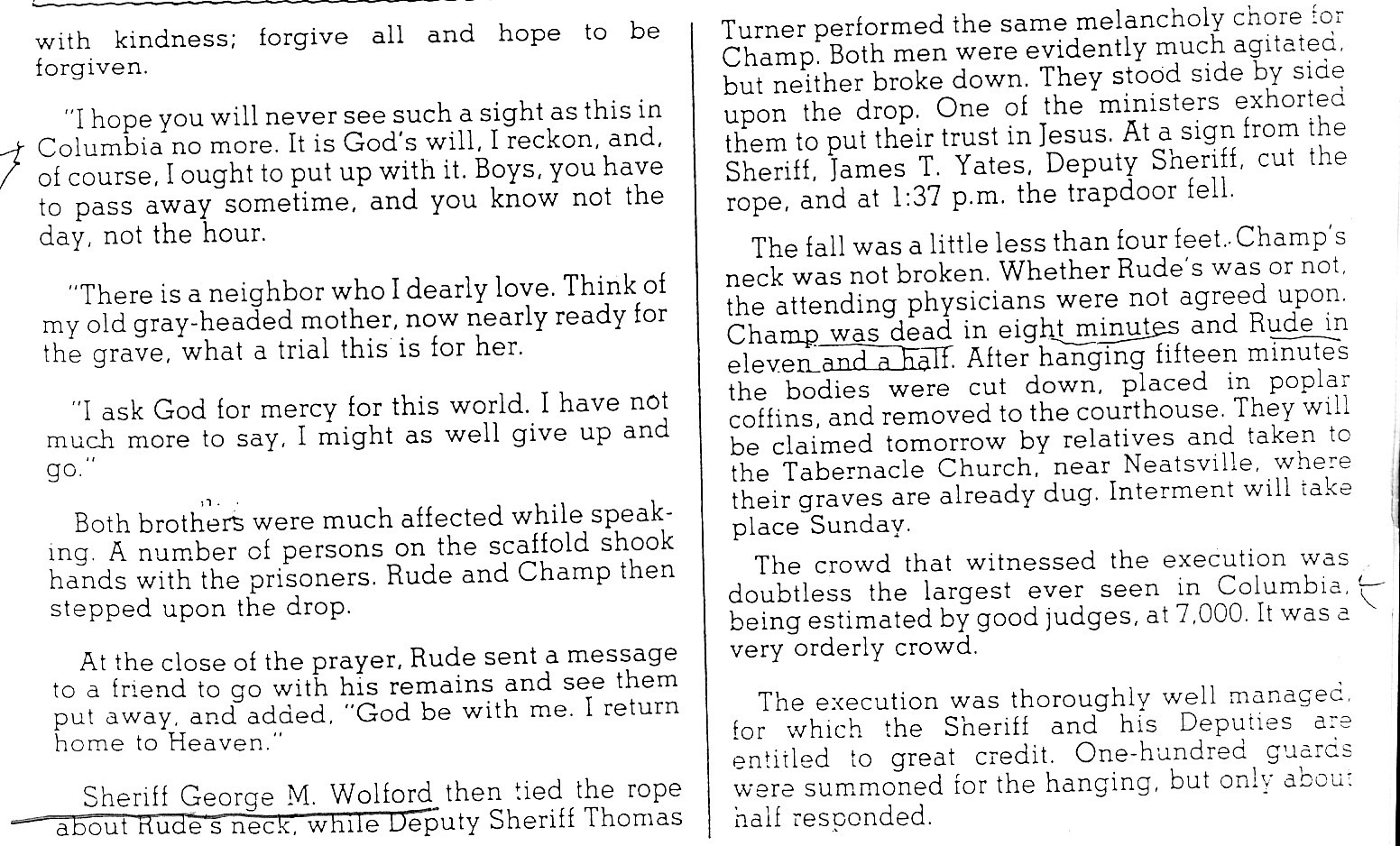 A Double Hanging in Columbia - 1884