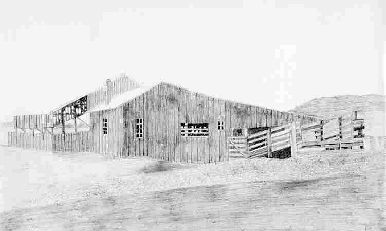 day the sales ranged from 300 to 600 head sold. To the left of the stockyard was a