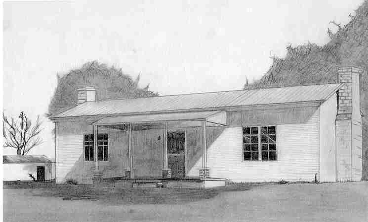 have been built in 1858 by Alfred and Ewing Pruitt. It consisted of four rooms.