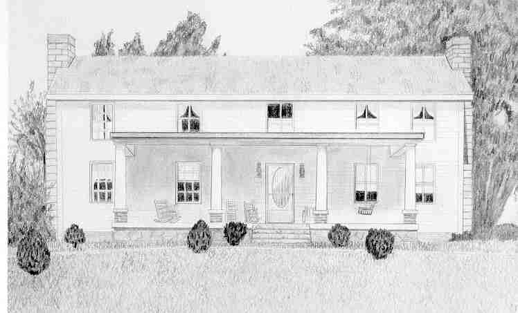 his marriage to Jane M. Blackburn in1845. The front of this house, a two story log