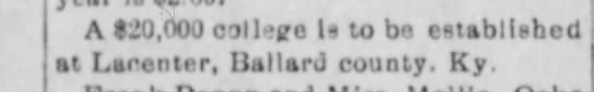 A $30,000 oollego is to be established at LaCenter, Ballard county, Ky.