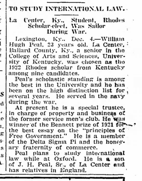 Peal plans to study international law while at Oxford. He is a son. of J. H. Peal, Sr.. of La