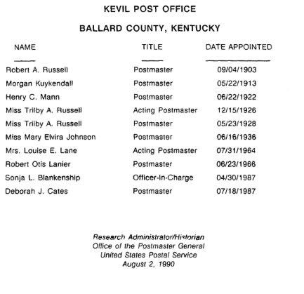 Submitters Note: Blandville PO has closed since this report was prepared.