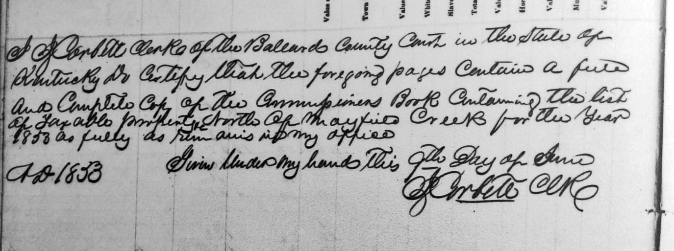 North of Mayfield Creek from Commissioners Book