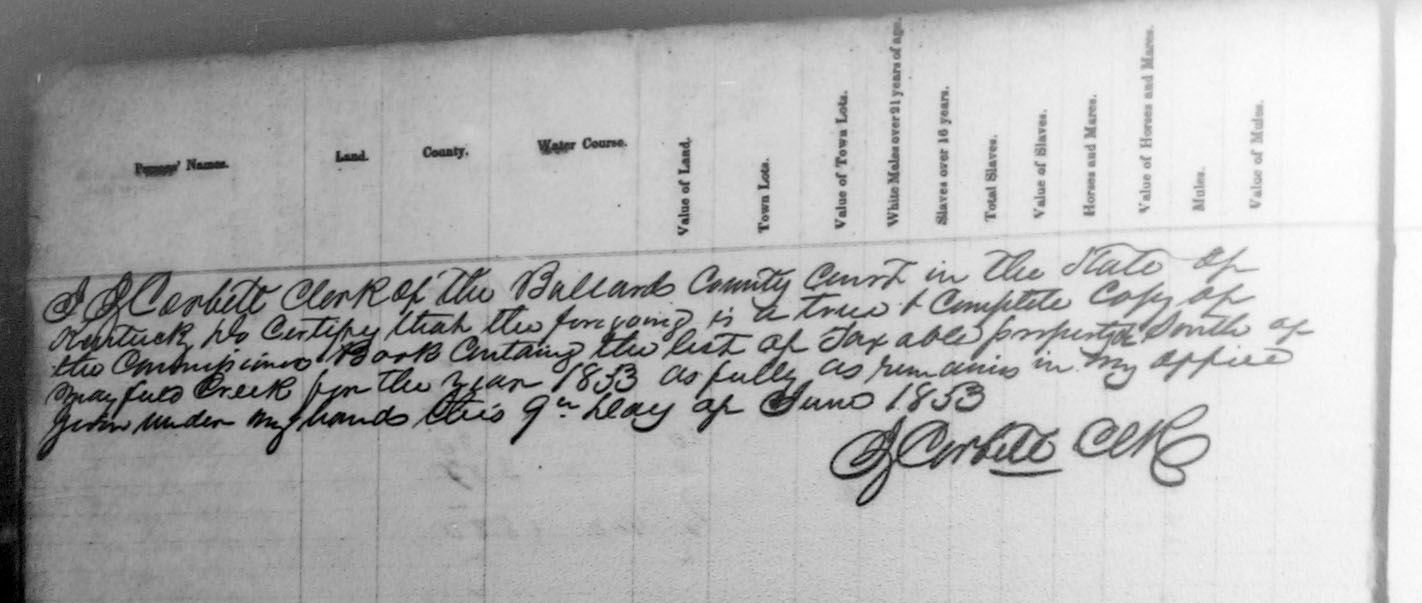 South of Mayfield Creek from Commissioners Book