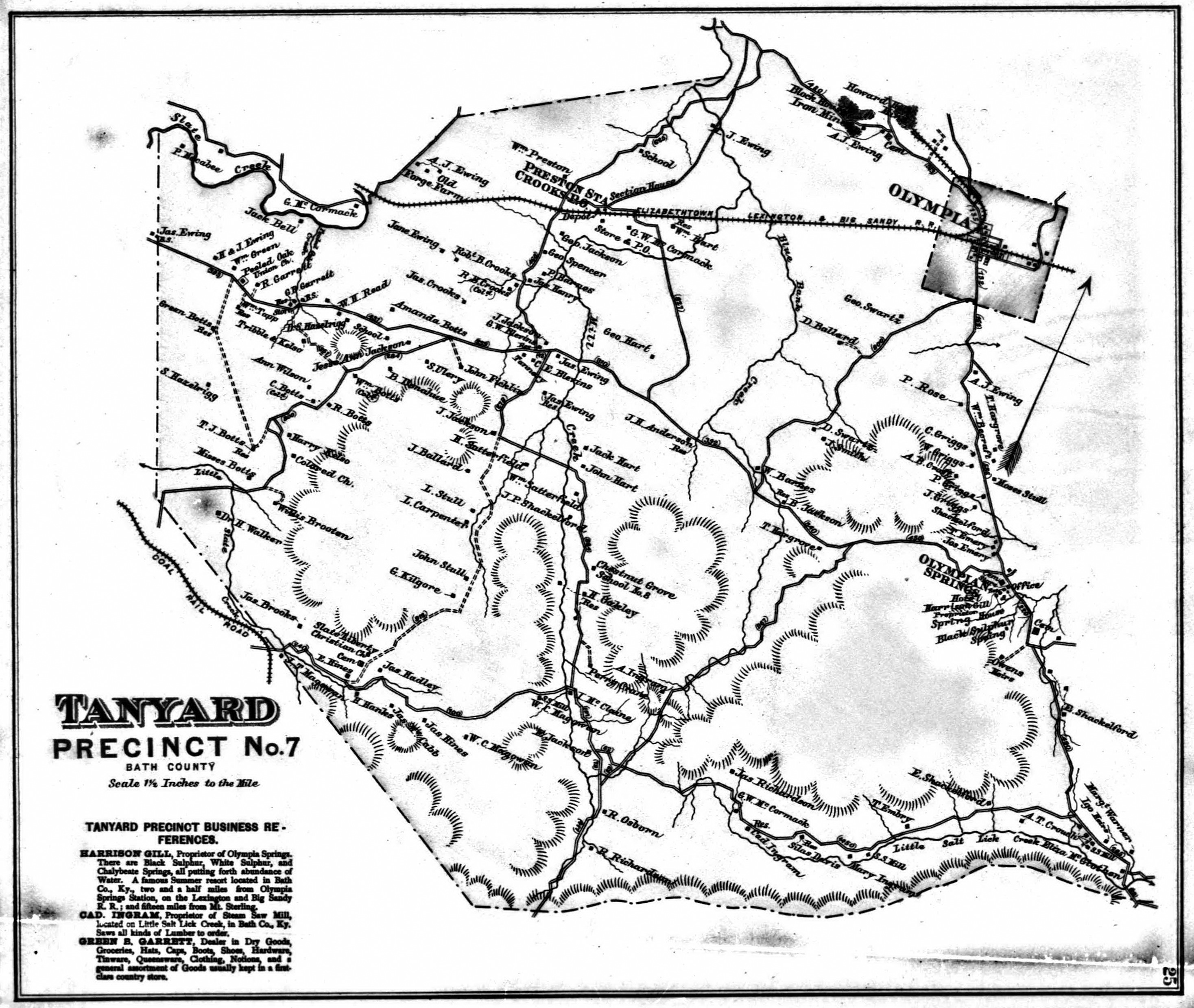 Bath County is located in Kentucky's Outer Bluegrass region. The Knobs region, visible from Olympian Springs, separates Bath County from the Appalachian Mountains and Eastern Coal Fields to the southeast.