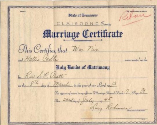 I have enjoyed this site so very much. I would like to submit the attached marriage certificate. It is that of my grandparents.