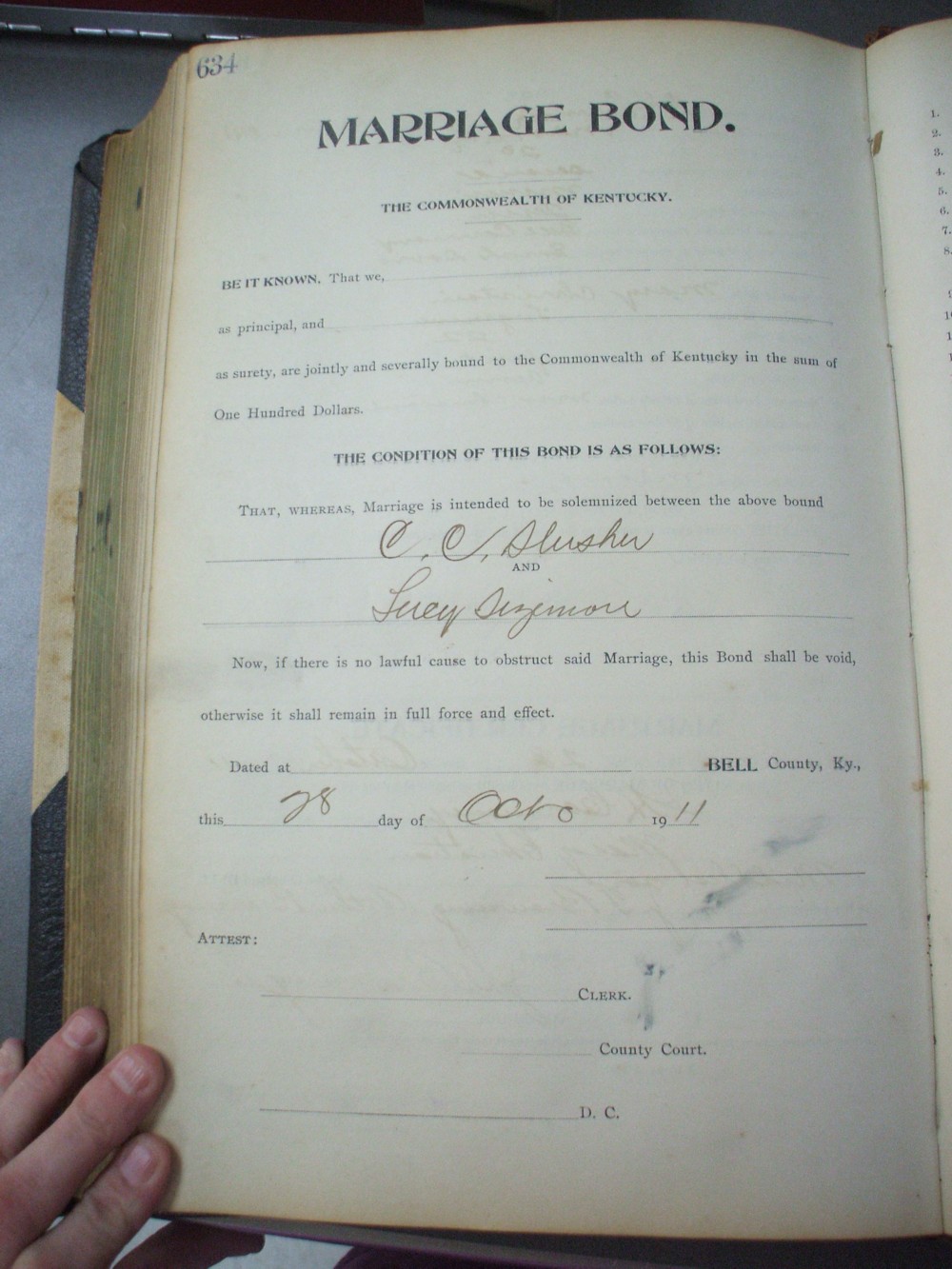 | Slusher | C C | Sizermore | Lucy | 8 | 634 | 10/30/1911 | |