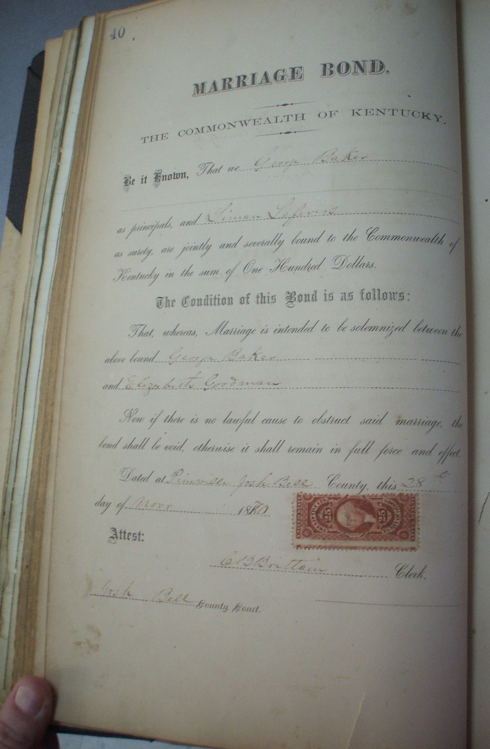 | Baker | George | Goodman | Elizabeth | B | 40 | 11/28/1870 | |
